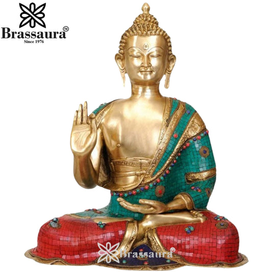 Brass Blessing Gem Stone Work Buddha Weight 11 Kg & Height 18.5 Inch