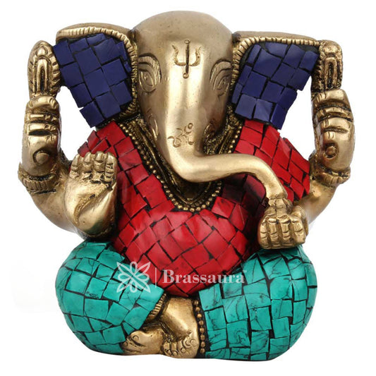 Brass Ganesha Statue For Home Decor And Gift Item Weight .8 Kg And Height 4 Inch