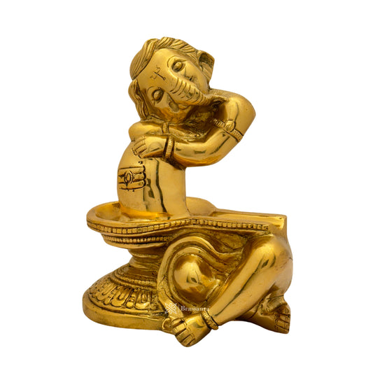 Brassaura™ Brass Ganesha Chowki Statue – Height 7.5 inches & Weight 2.35 kgs | Ganpati Diya Murti for Home & Pooja Room