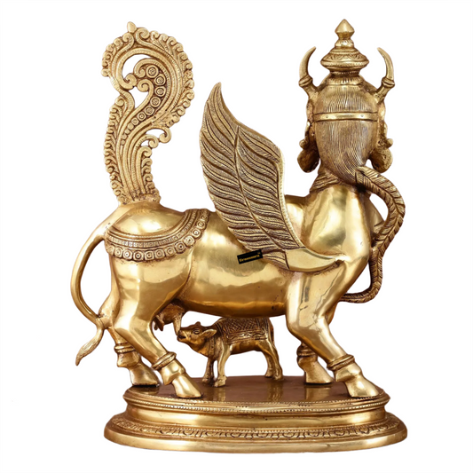 Brassaura™ Kamdhenu Cow Statue | 16.5 Inches Height | 14 Kgs Weight | Exquisite Brass Craftsmanship