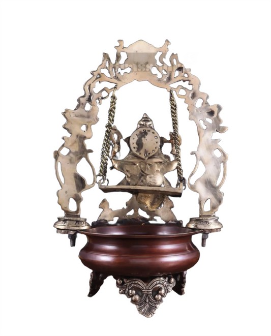 Brassaura™ Lord Ganesha on Swing Brass Urli – 9 kgs, 20 Inches Height – Auspicious Home Decor & Gifting Piece