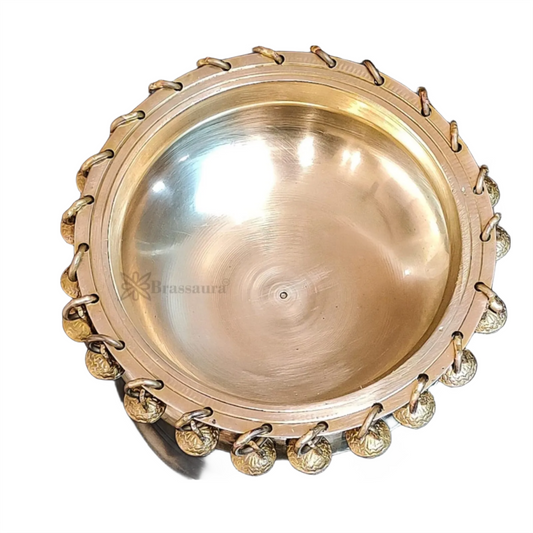 Brassaura™ Handcrafted Brass Round Urli Bowl with Ghungroos – 1.2 kgs, 3 Inches Height – Traditional Decorative Accent