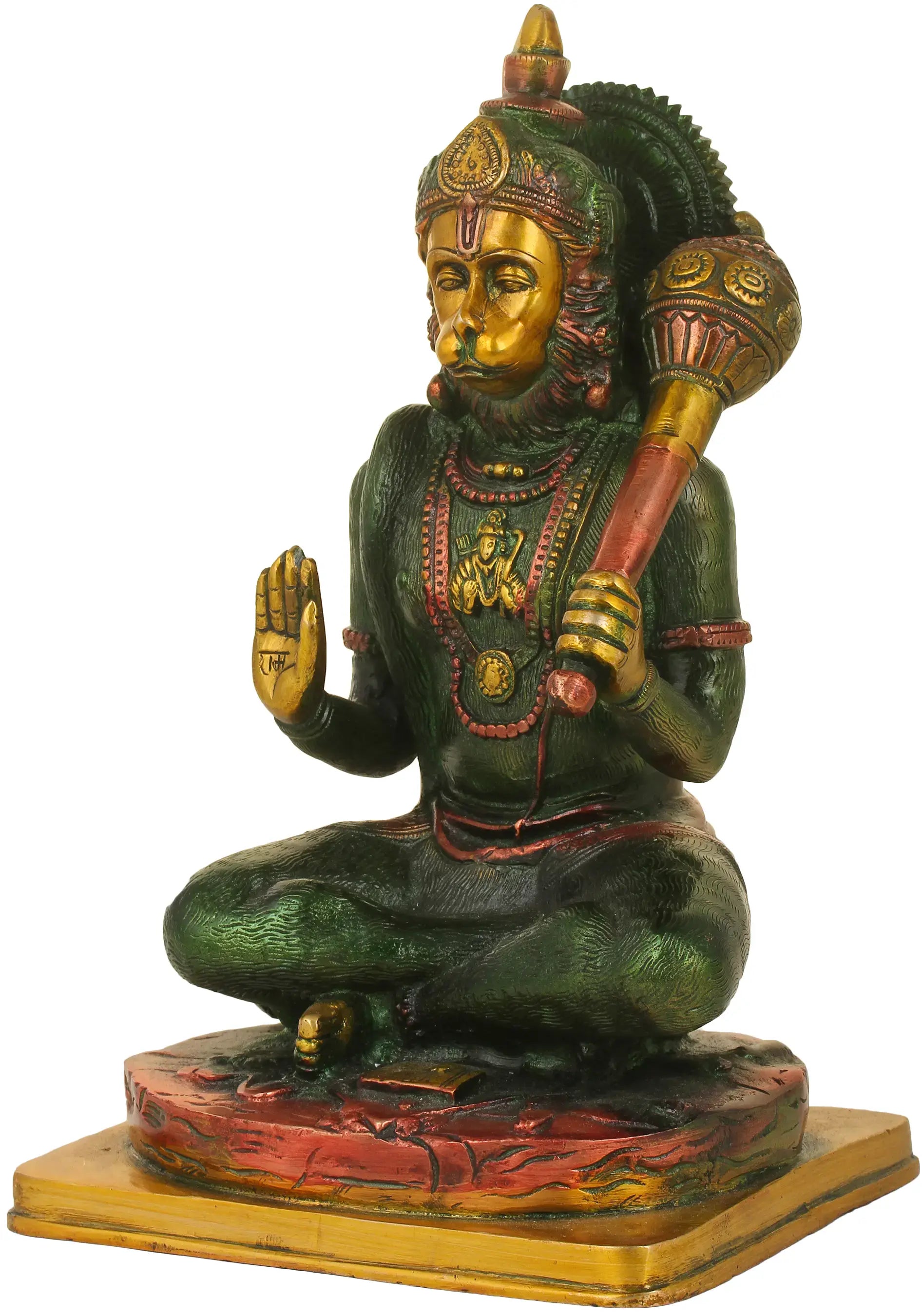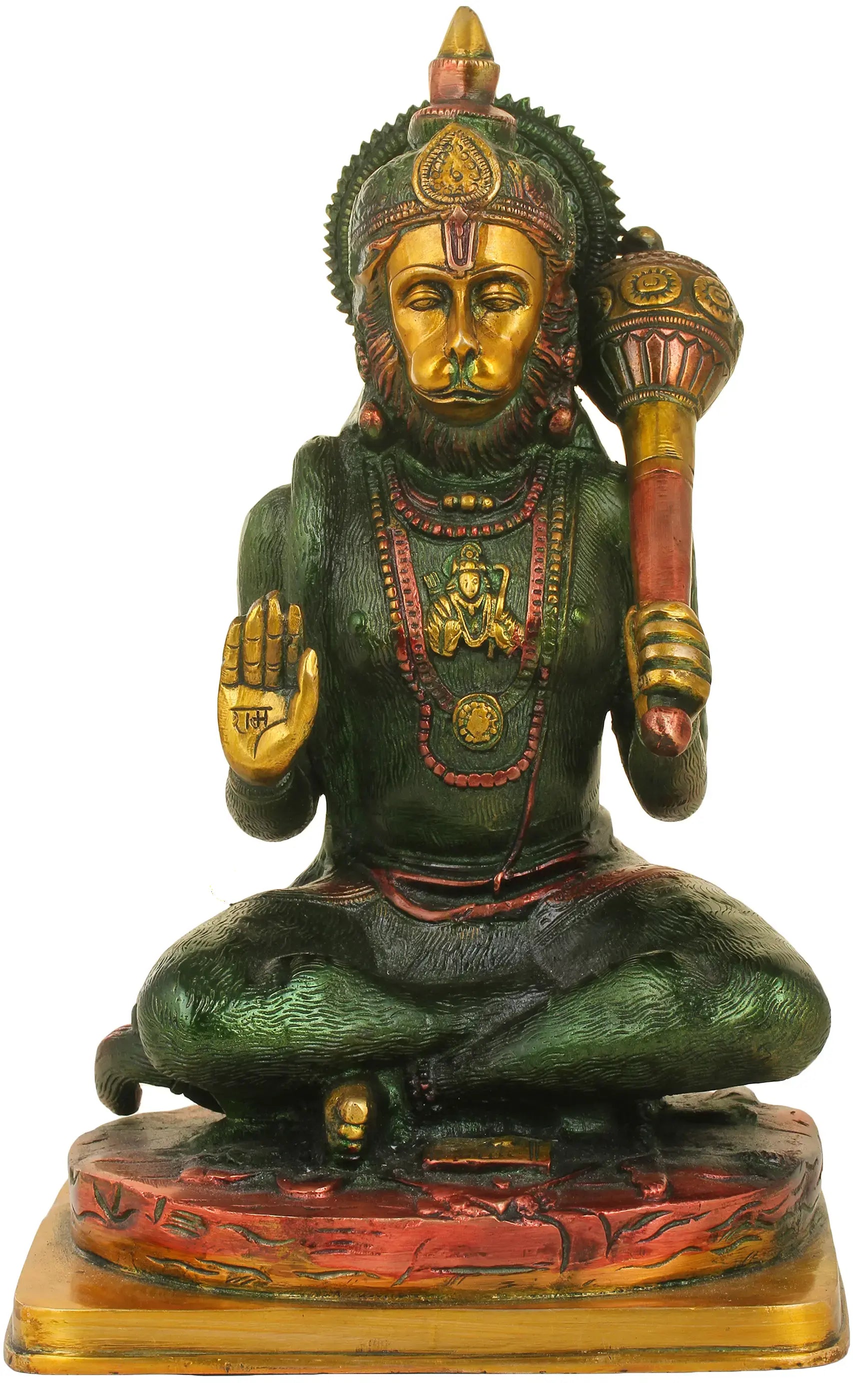 बारीक विवरणों के साथ विशेषज्ञ रूप से हस्तनिर्मित, यह आशीर्वाद हनुमान की मूर्ति अभय मुद्रा और गदा के साथ एक शांत बैठी हुई मुद्रा में देवता को दर्शाती है, जो सुरक्षा और दिव्य शक्ति का प्रतीक है। जटिल आभूषण, अभिव्यंजक चेहरे की विशेषताएं और पारंपरिक शिल्प कौशल इसे घर के मंदिरों, ध्यान स्थानों और पवित्र आंतरिक सज्जा के लिए एक शक्तिशाली आध्यात्मिक केंद्र बिंदु बनाते हैं।