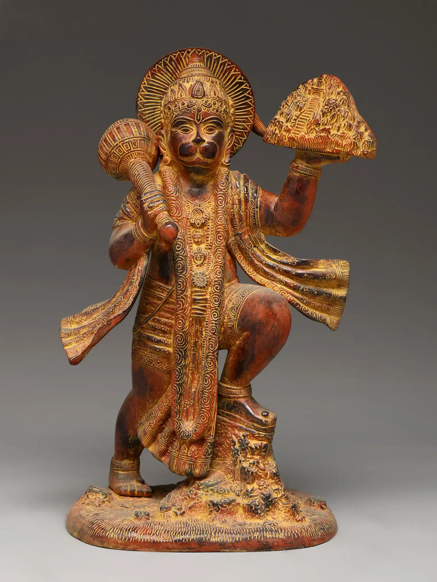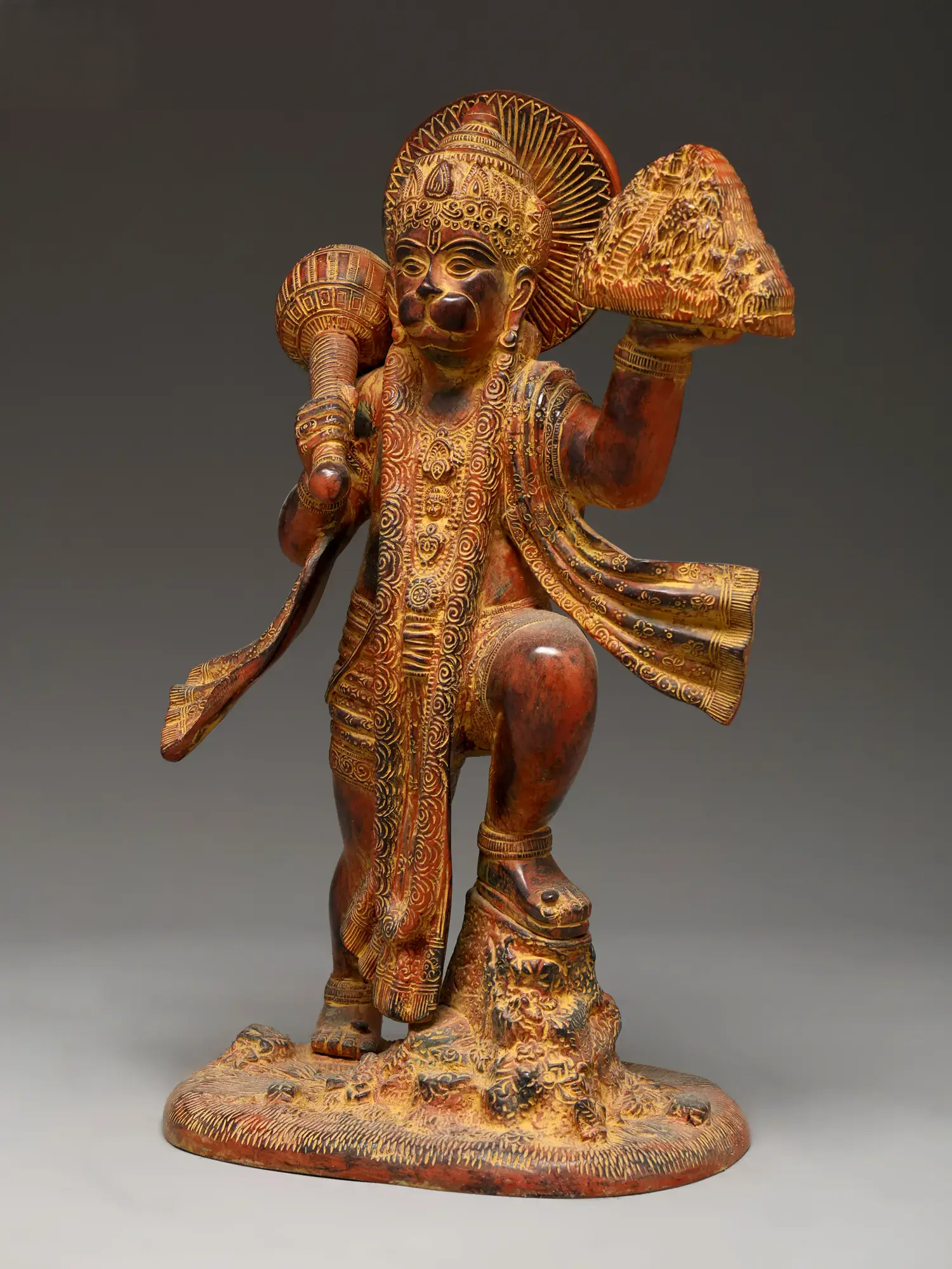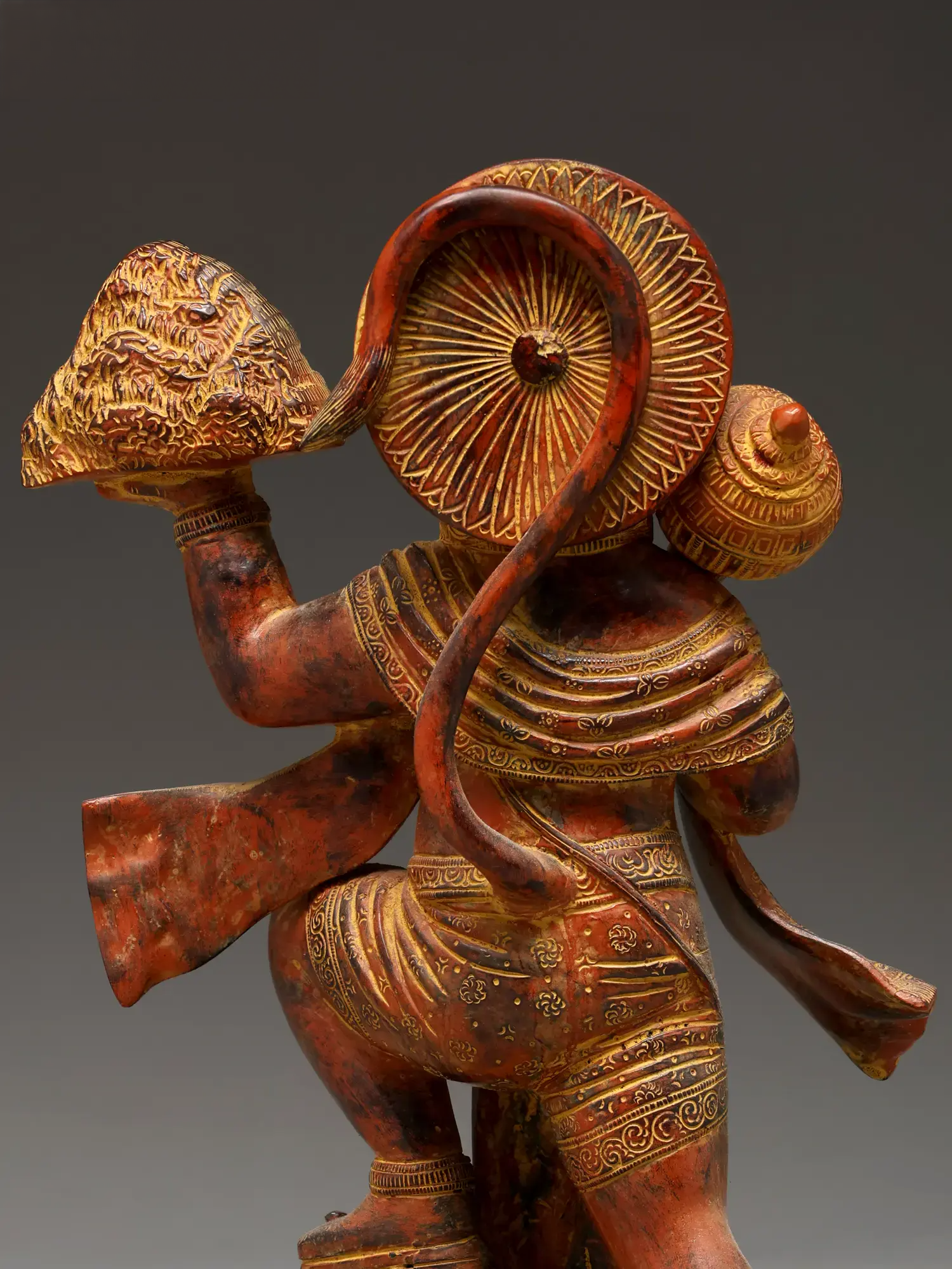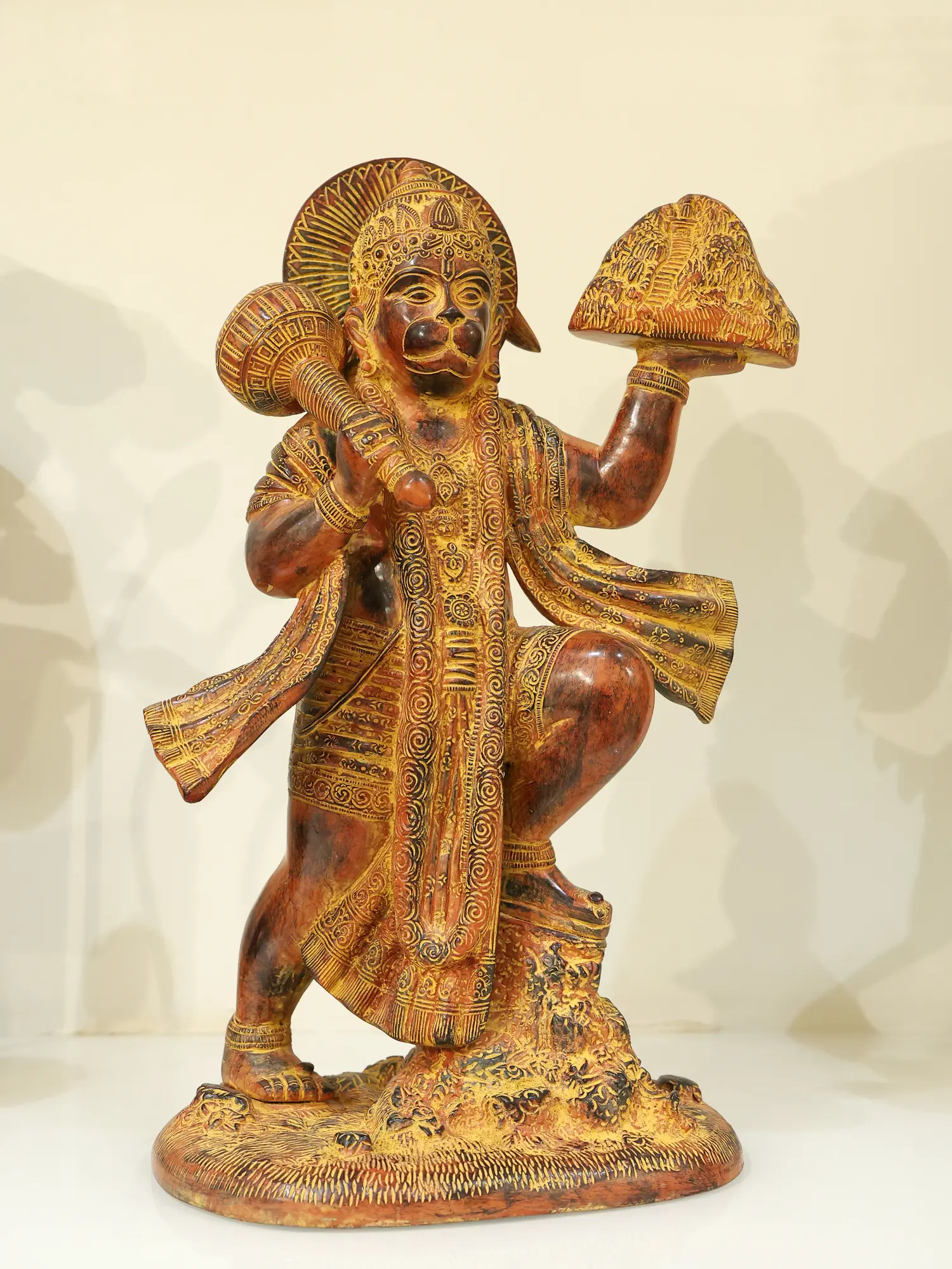 ब्रासौउरा® सिंदूरी हनुमान संजीवनी पर्वत ले जाते हुए | पीतल की प्रतिमा | ऊंचाई 15.35 इंच और वज़न 8.90 किलोग्राम