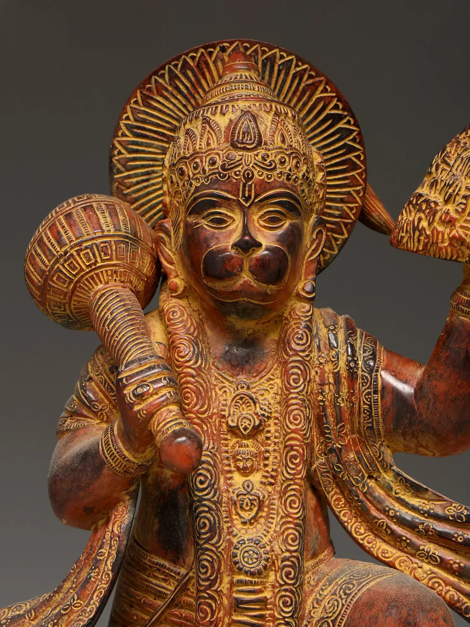 विशेषज्ञों द्वारा हस्तनिर्मित, यह सिंदूरी हनुमान प्रतिमा भगवान हनुमान को संजीवनी पर्वत उठाते हुए और अपनी गदा धारण किए हुए एक गतिशील मुद्रा में दर्शाती है, जो अटूट भक्ति, अपार शक्ति और दिव्य सुरक्षा का प्रतीक है। जटिल नक्काशी और समृद्ध प्राचीन फ़िनिश बेहतरीन शिल्प कौशल को उजागर करती है, जिससे यह घरों और पवित्र स्थानों के लिए एक शक्तिशाली आध्यात्मिक केंद्र बिंदु बन जाती है।