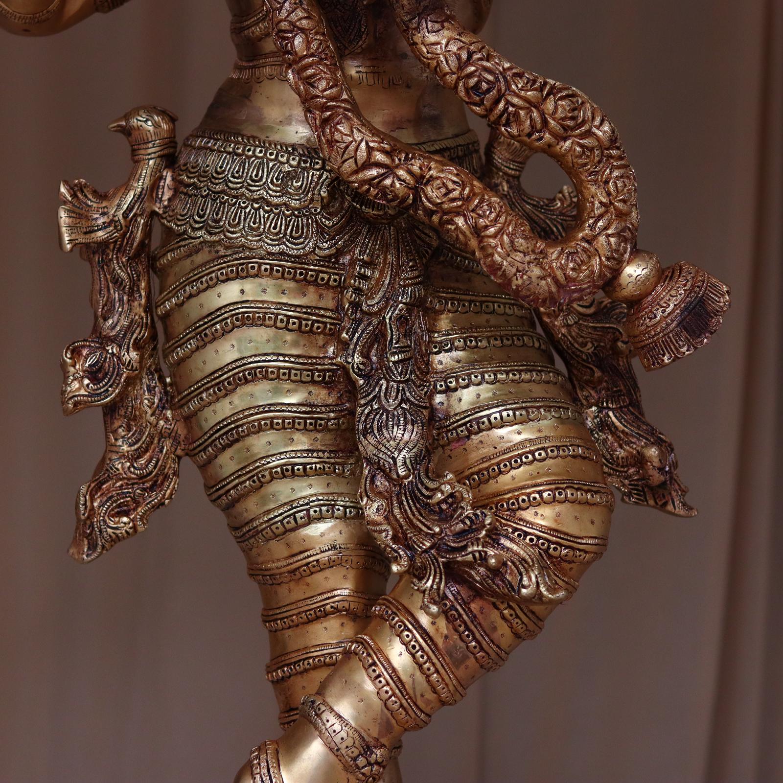 ब्रसौरा® ब्रास ब्लैक भगवान कृष्ण त्रिभंगी मूर्ति | ऊंचाई 46 इंच और वजन 70 किलो