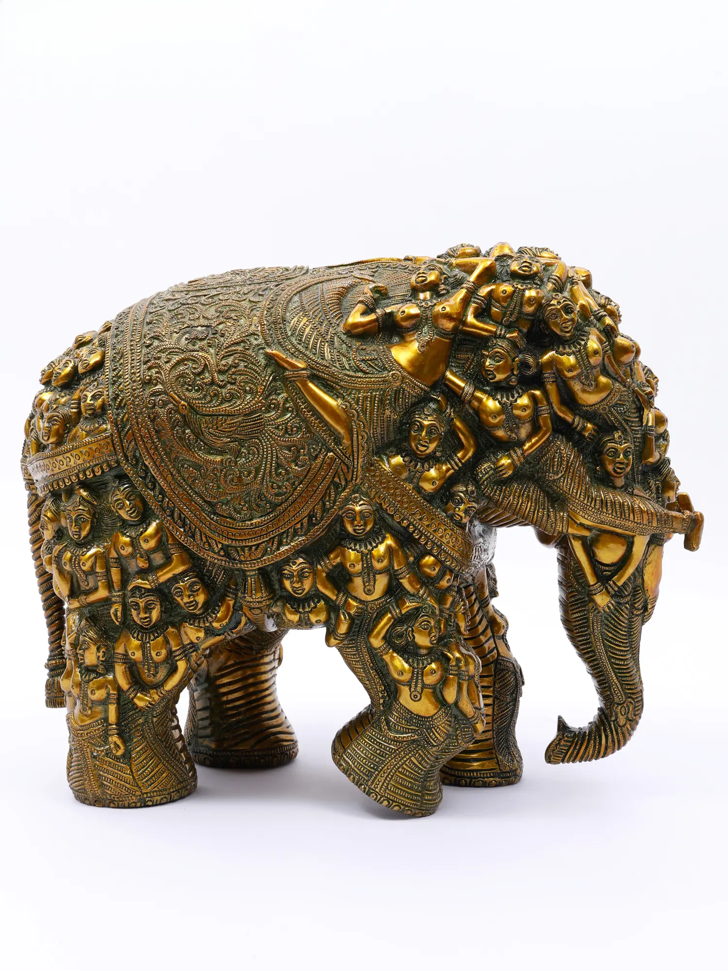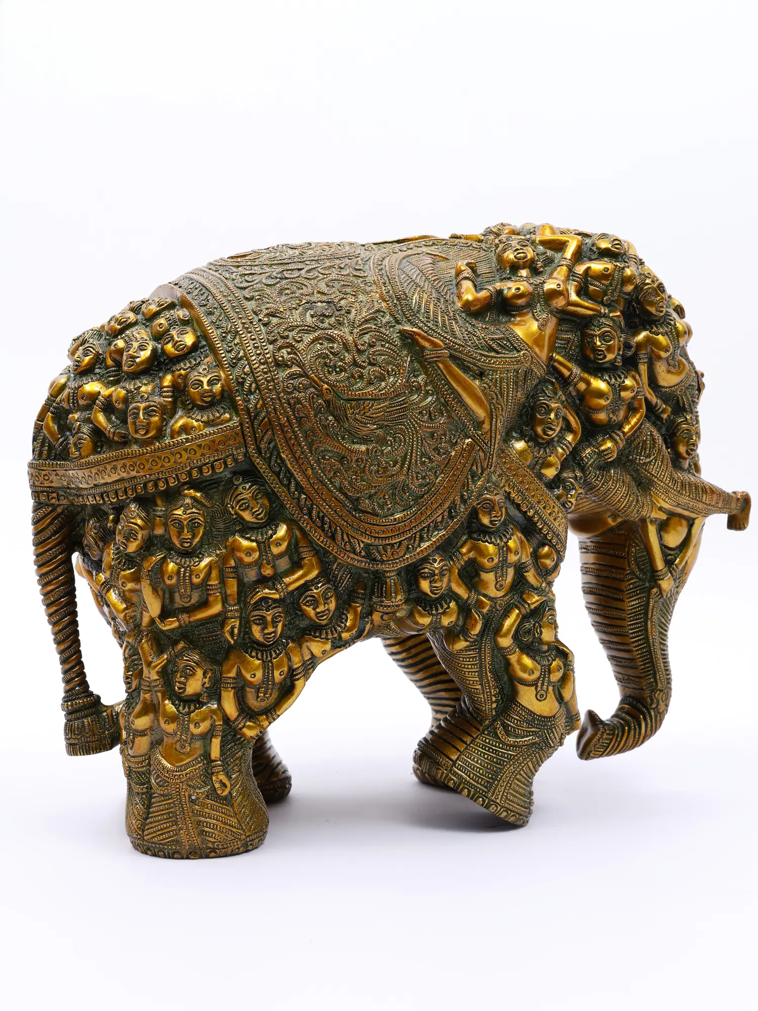 ब्रासुरा® जटिल रूप से गढ़ी गई पीतल की हाथी की मूर्ति | शुद्ध पीतल | ऊंचाई 11 इंच और वज़न 17 किग्रा