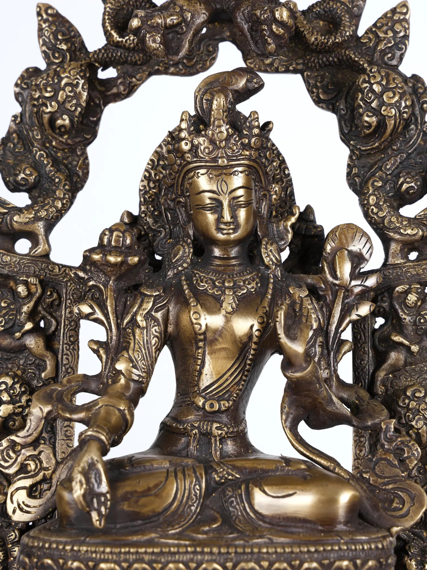 देवी तारा की यह उत्कृष्ट पीतल की प्रतिमा शांतिपूर्ण बैठे हुए मुद्रा में खूबसूरती से चित्रित की गई है, जो करुणा, सुरक्षा और दिव्य मार्गदर्शन का प्रतीक है। उनके आभूषणों, मुकुट और मनमोहक भावों का परिष्कृत विवरण पारंपरिक शिल्प कौशल और आध्यात्मिक लालित्य को दर्शाता है। प्राकृतिक पीतल का फिनिश इसकी पवित्र उपस्थिति को बढ़ाता है, जिससे यह ध्यान स्थान, घर के मंदिरों और आध्यात्मिक सजावट के संग्रह के लिए एक सार्थक जोड़ बन जाता है।