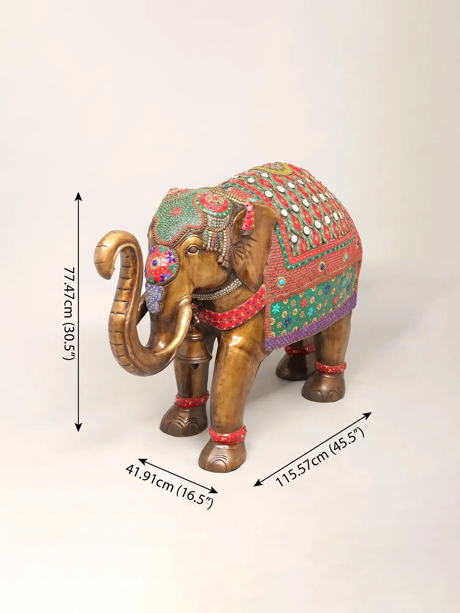ब्रासाउरा® मीनाकारी जड़ाऊ काम के साथ रॉयल ब्रास हाथी | ऊंचाई 30.5 इंच और वज़न 87.85 किलोग्राम