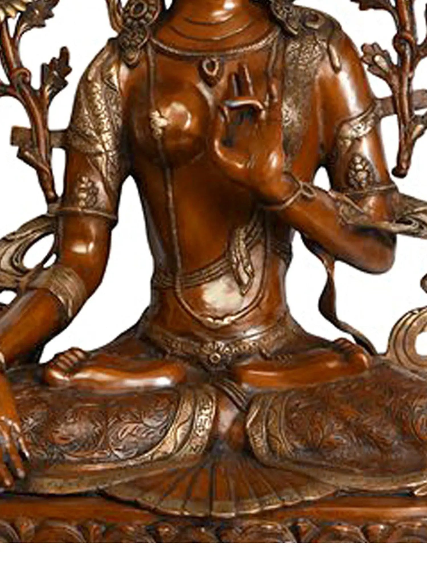 Brassaura® पीतल बैठी तारा देवी प्रतिमा | एंटीक डुअल टोन फिनिश | ऊंचाई 34 इंच और वजन 33.30 किलोग्राम