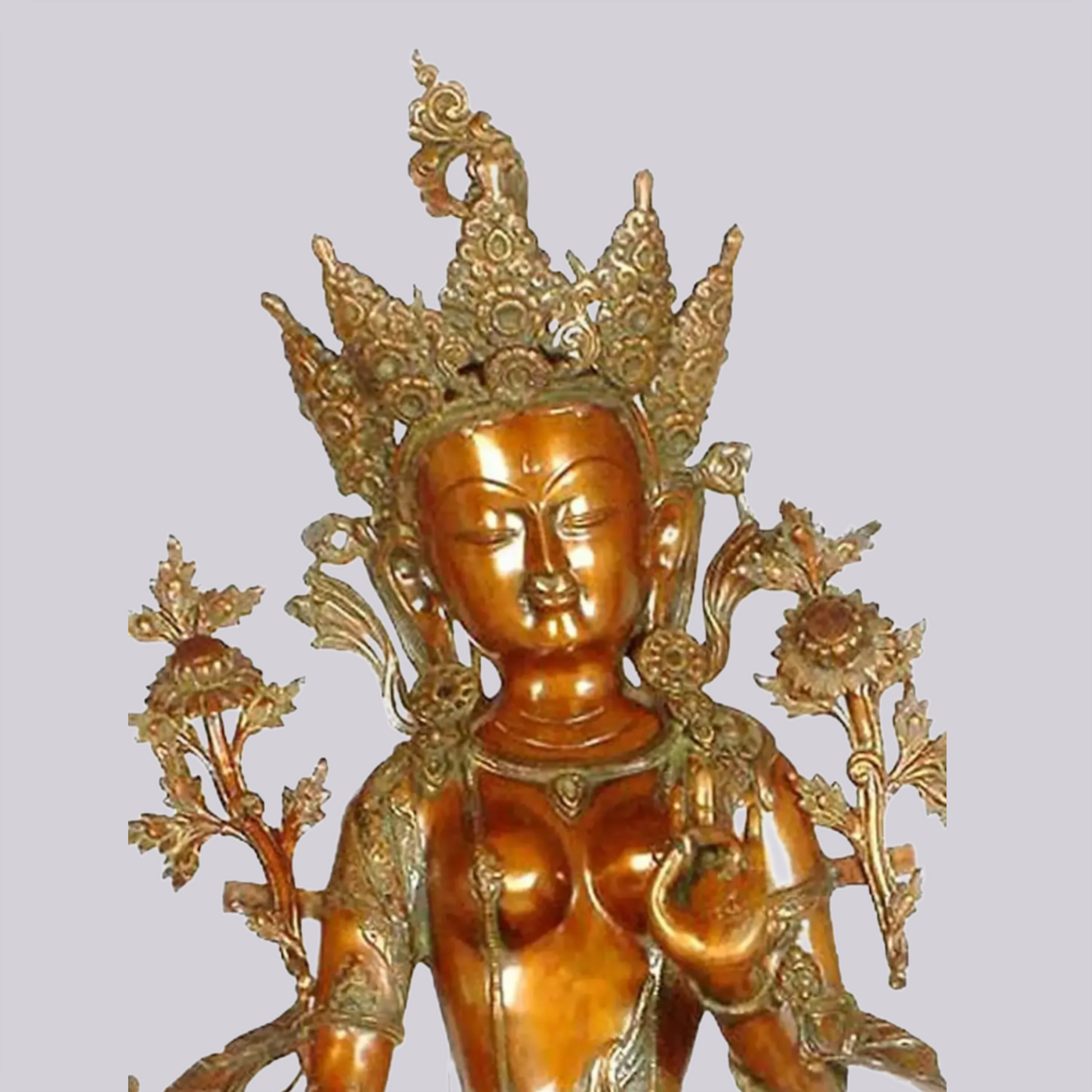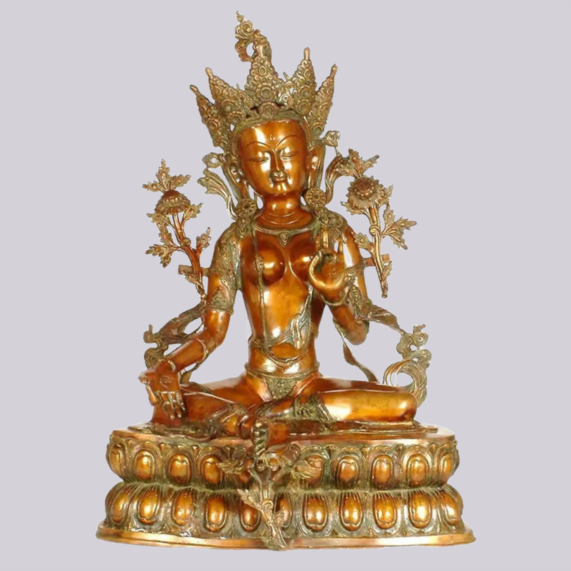 मुकुट, आभूषणों, कमल के आधार और मुद्रा में बारीकी से की गई नक्काशी अद्वितीय कारीगर शिल्प कौशल को दर्शाती है। एंटीक ब्रास फिनिश इसकी पारंपरिक सुंदरता को बढ़ाती है और दीर्घकालिक टिकाऊपन व कालातीत अपील सुनिश्चित करती है।