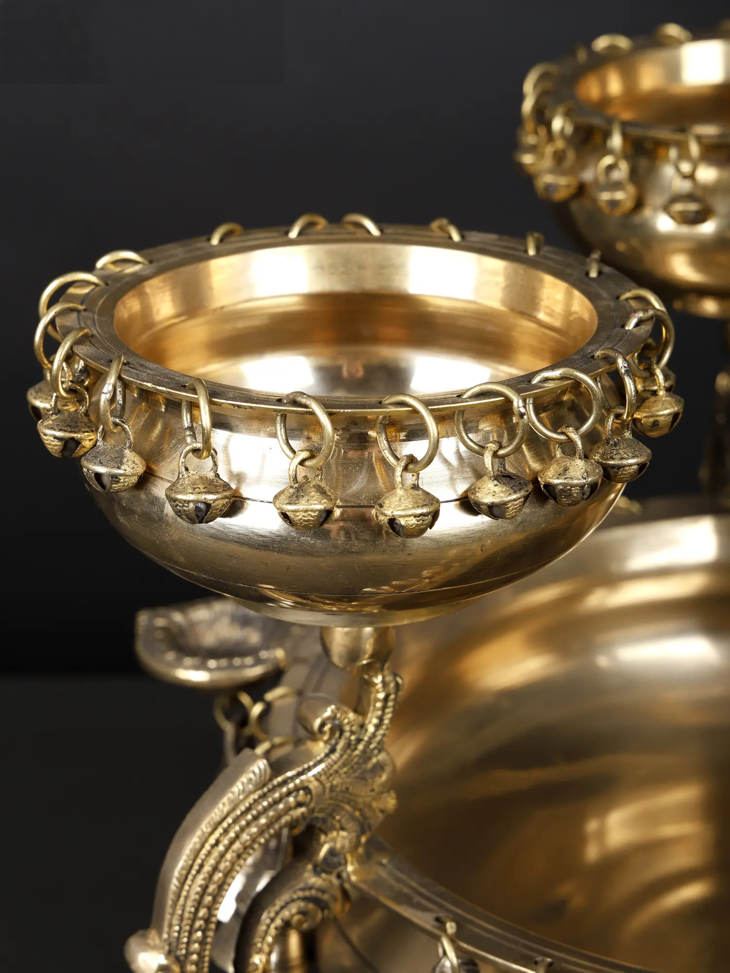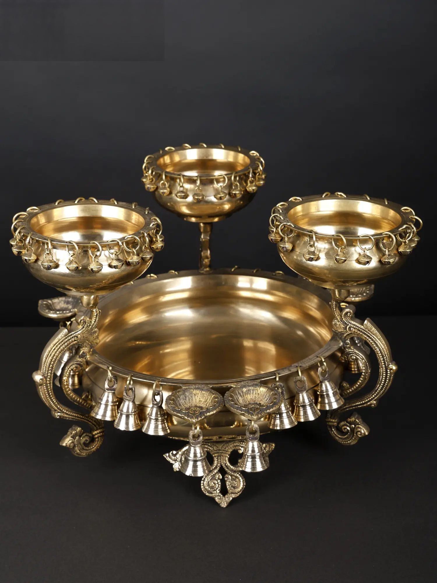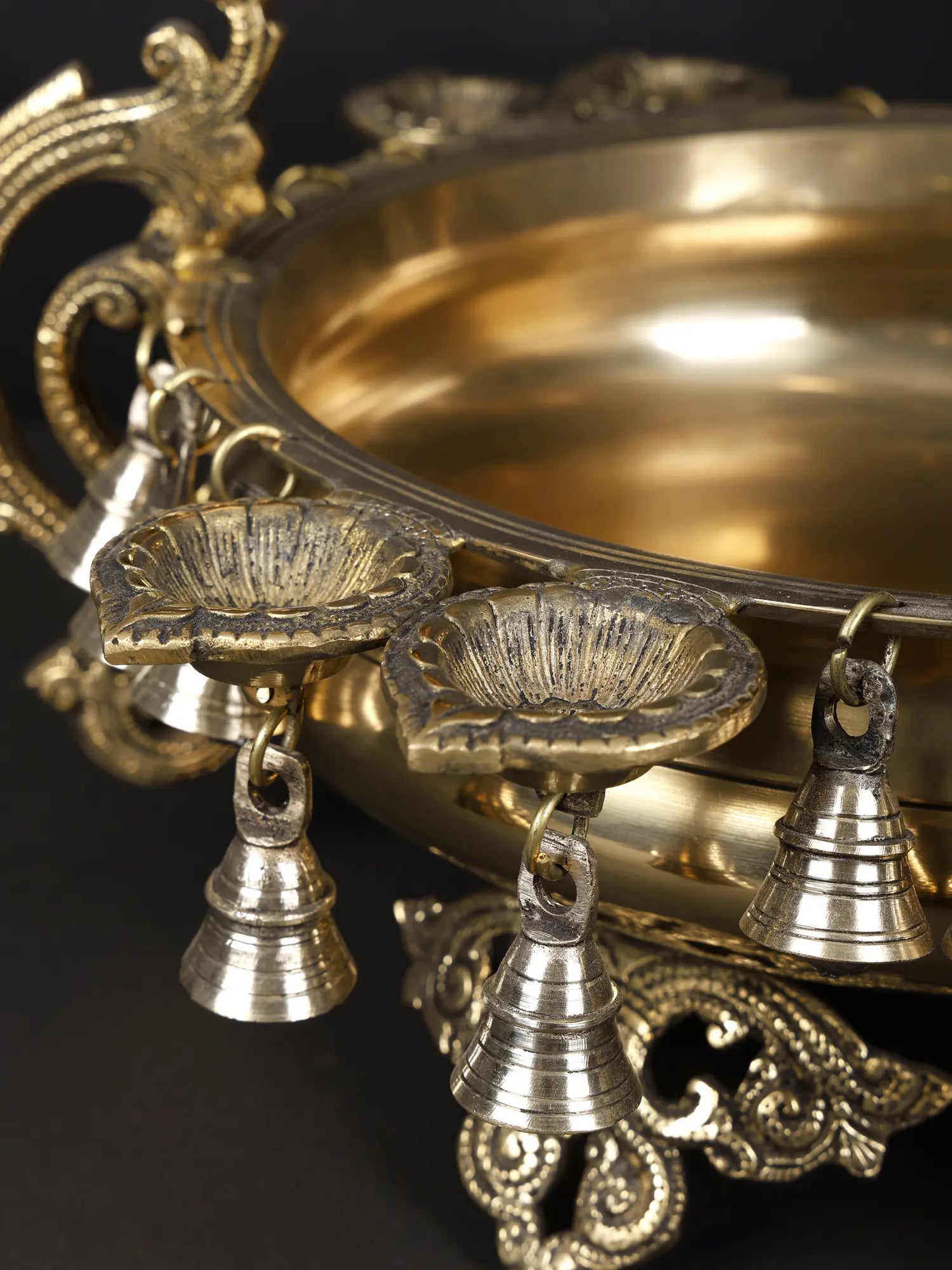 ब्रासौर® फोर इन वन डिज़ाइनर ब्रास उर्ली, घंटियों और दीयों के साथ | शुद्ध पीतल | ऊंचाई 12.6 इंच और वज़न 15.75 किलोग्राम