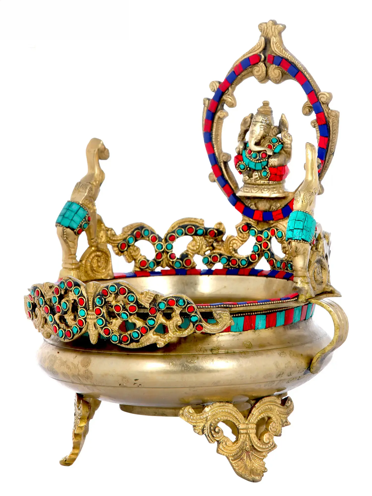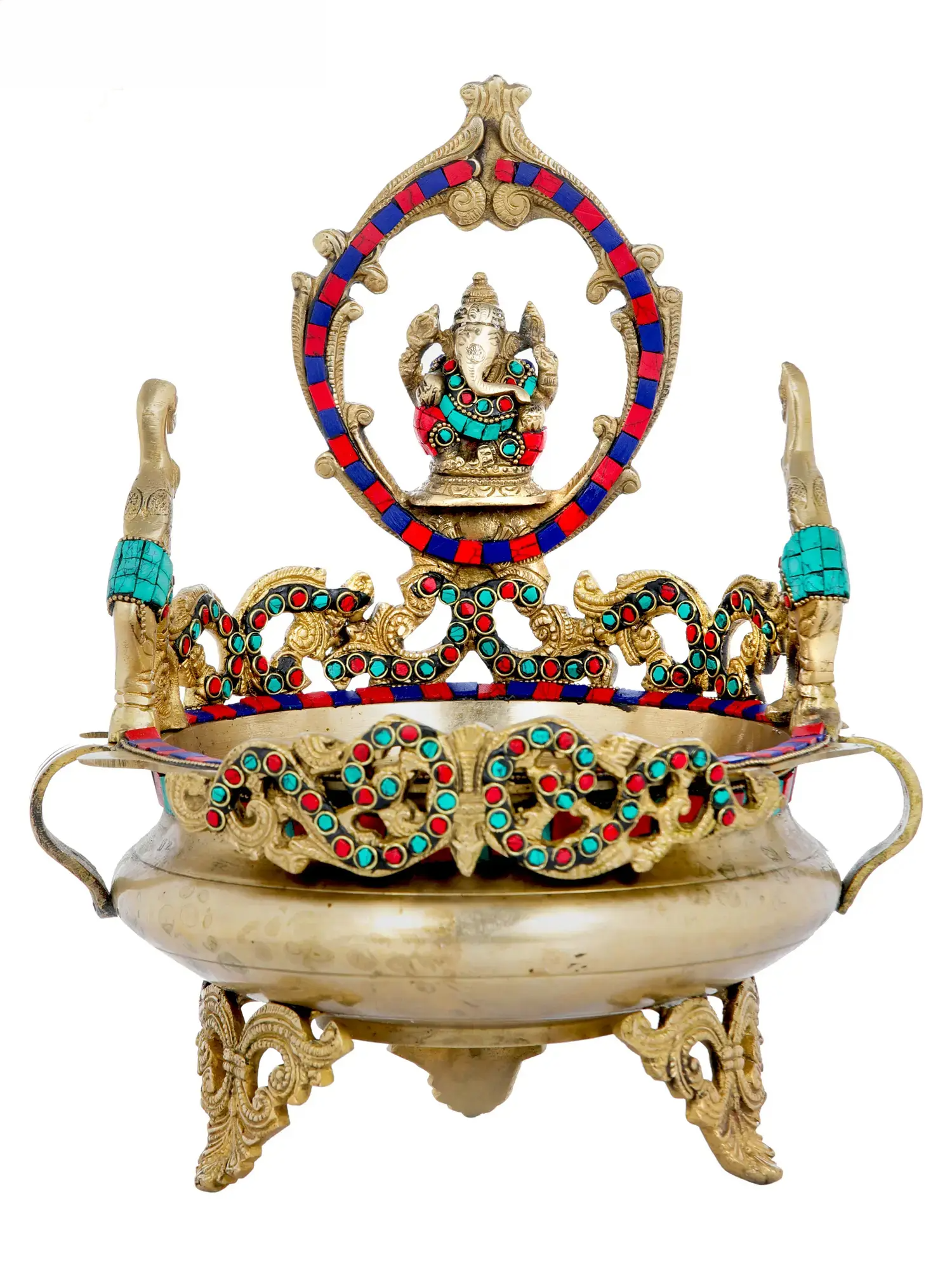 ब्रासोरा® भगवान गणेश उर्ली मीनाकारी जड़ाई के साथ | शुद्ध पीतल | ऊंचाई 13 इंच और वज़न 3.50 किलोग्राम