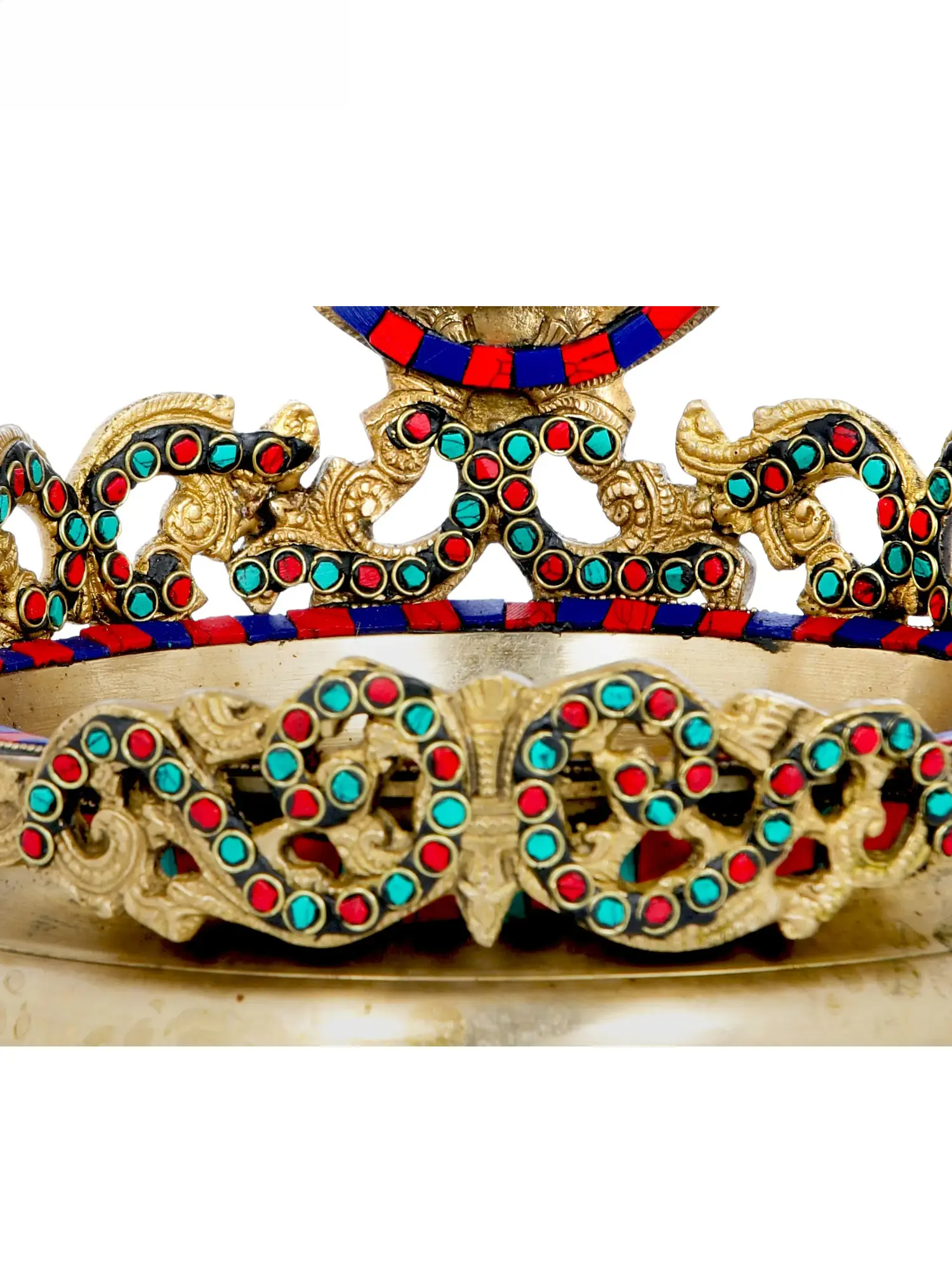 • फिनिश: रंगीन जड़ाई के काम के साथ एंटीक गोल्ड