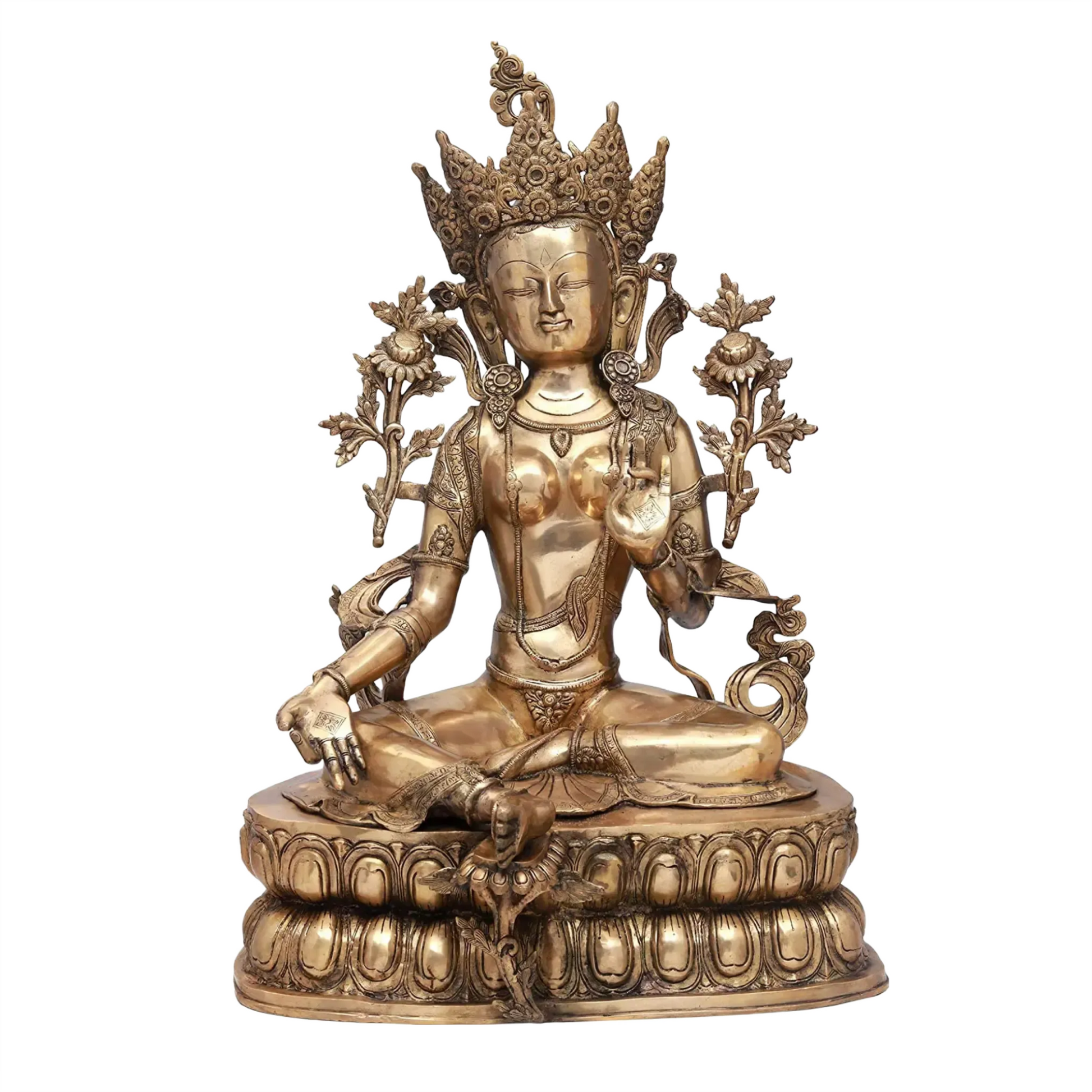 ब्रासौड़ा® आभूषण युक्त चौकी पर बैठी तारा देवी | एंटीक फ़िनिश के साथ शुद्ध पीतल | ऊंचाई 34.06 इंच और वज़न 38.34 किग्रा