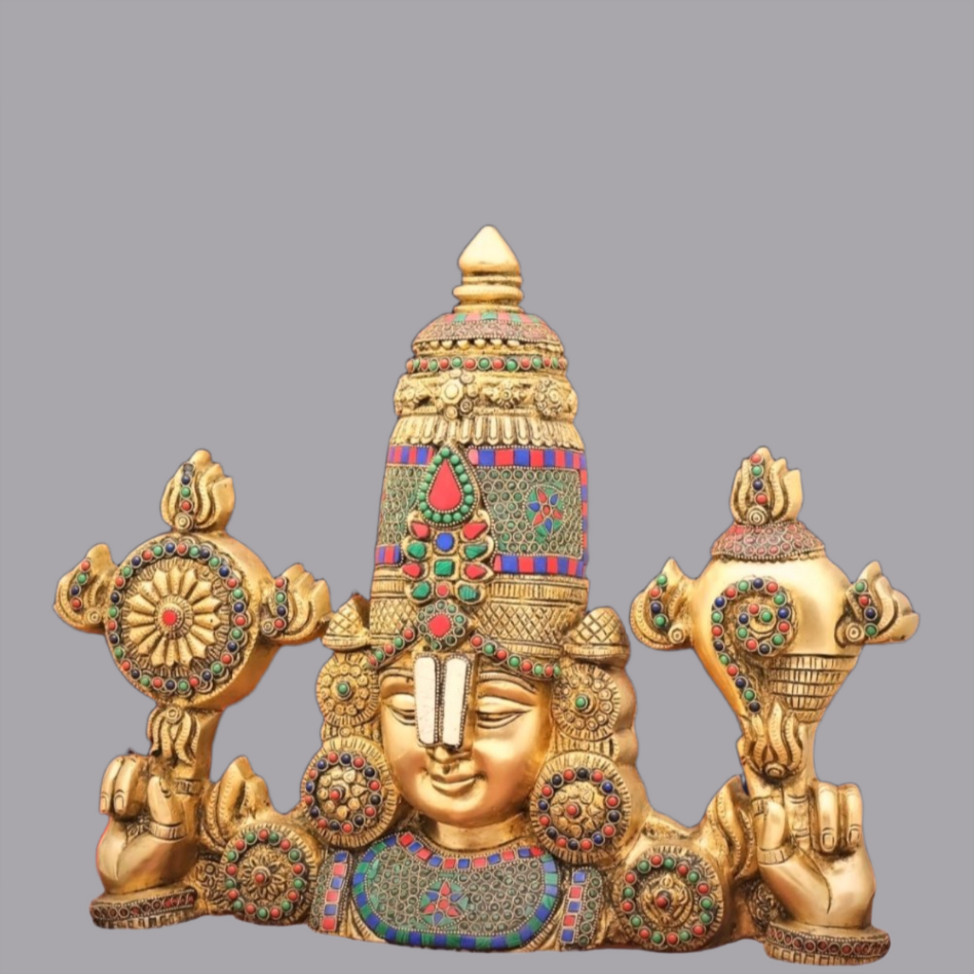 Brassaura® वॉल हैंगिंग तिरुपति बालाजी स्टोन वर्क के साथ शुद्ध पीतल में | ऊँचाई 16 इंच