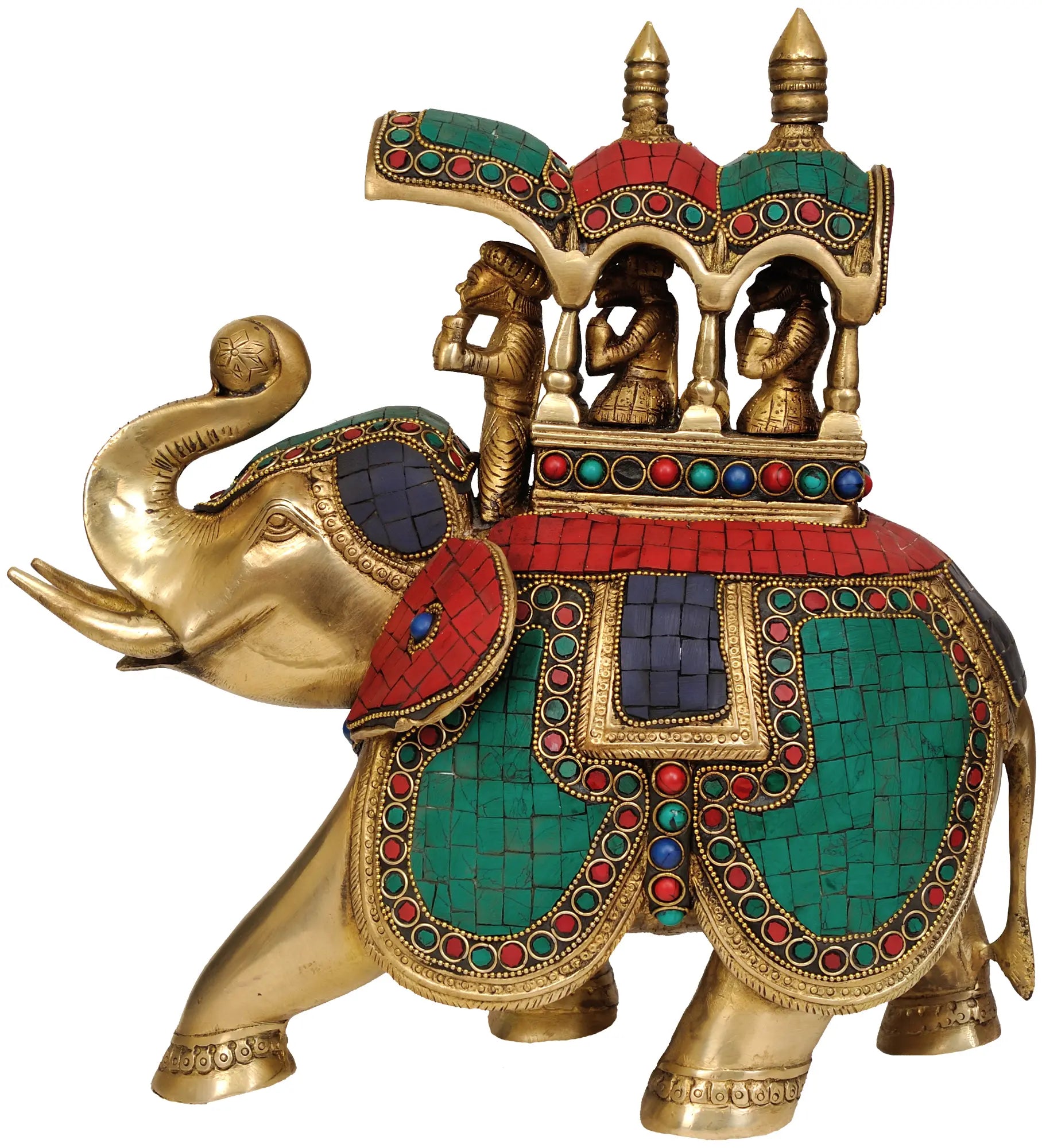 ब्रासरा® मीनाकारी जड़ाई के साथ सजावटी पीतल का हाथी | ऊँचाई 12 इंच और वज़न 9.10 किलोग्राम