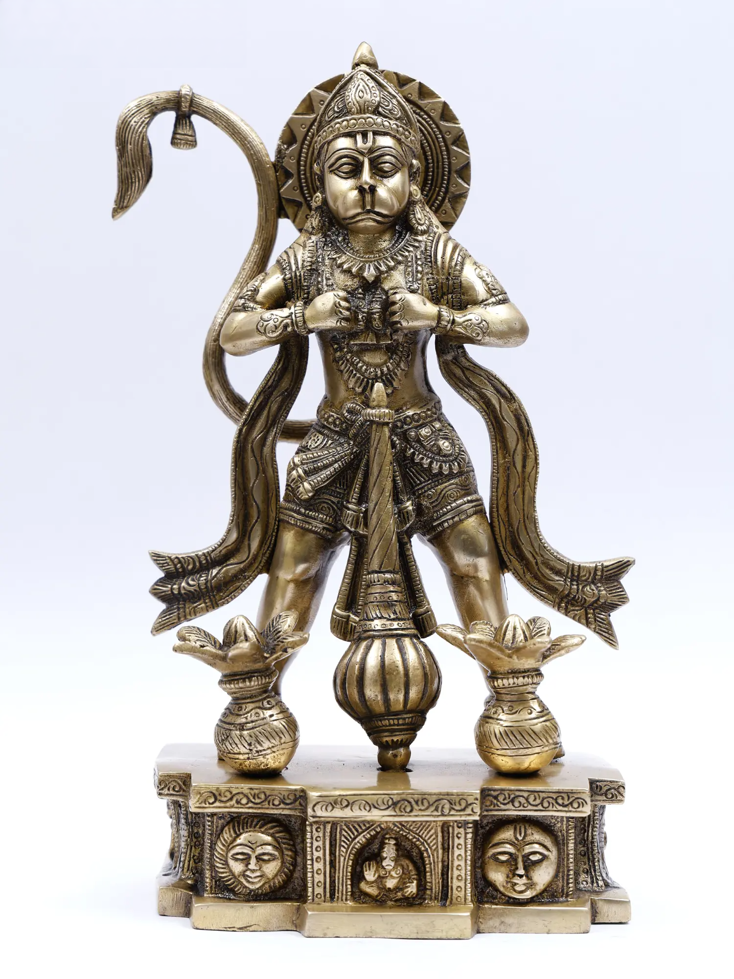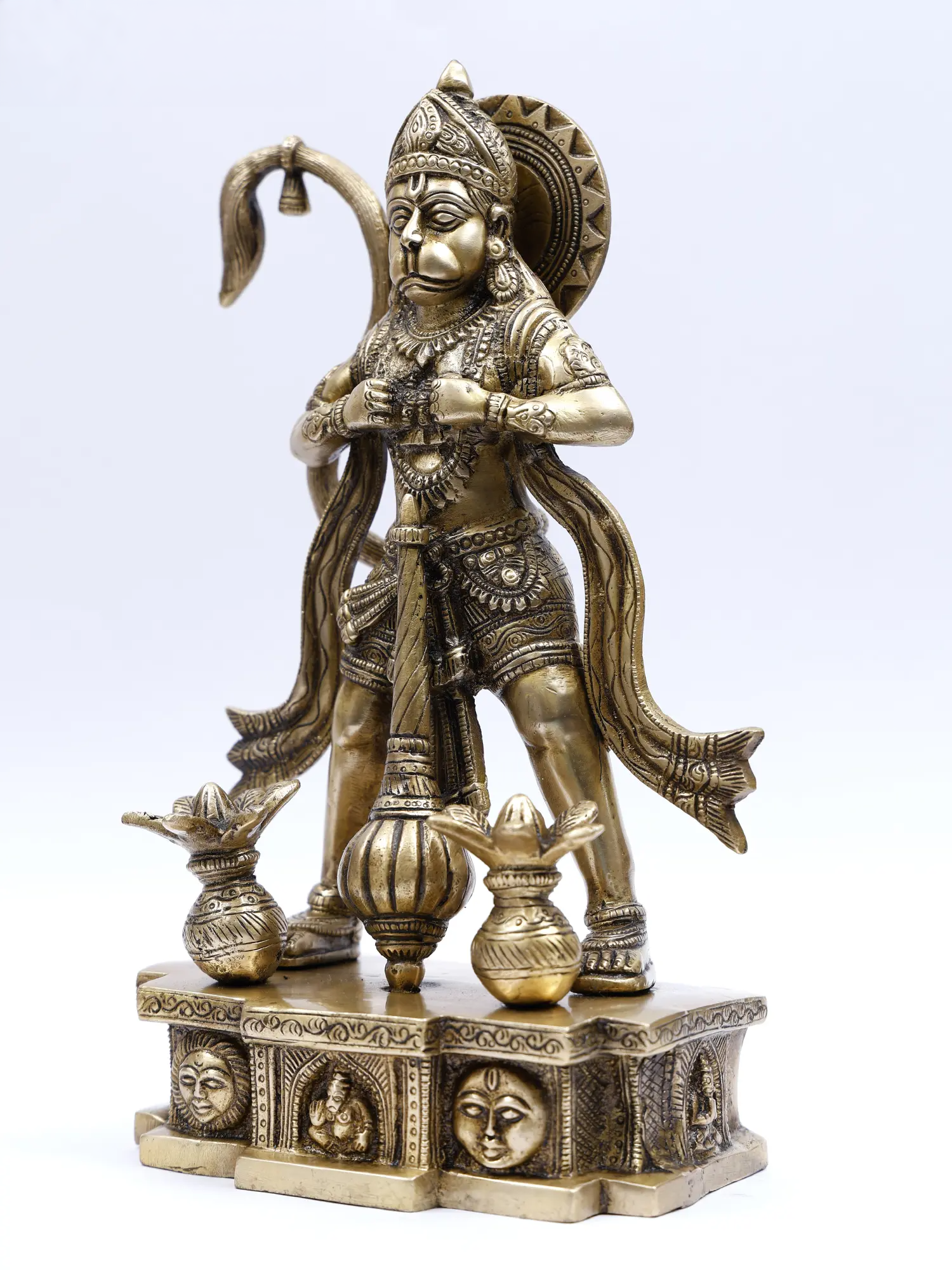 Brassaura® पंचमुखी हनुमान गदा और पूर्णघट के साथ खड़े हुए | ऊँचाई 12.2 इंच और वज़न 4.05 किलोग्राम