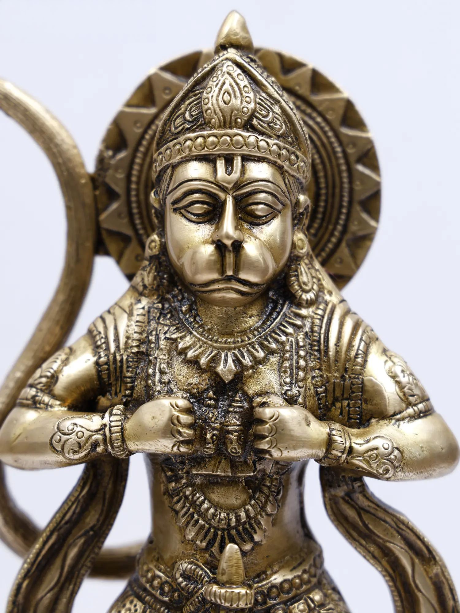 विशेषज्ञता से हस्तनिर्मित, यह पंचमुखी हनुमान प्रतिमा दिव्य शक्ति, सुरक्षा और आध्यात्मिक अधिकार का प्रतिनिधित्व करती है। जटिल रूप से नक्काशीदार विवरणों और पारंपरिक iconography के साथ एक प्रभावशाली खड़ी मुद्रा में चित्रित, यह मूर्तिकला पवित्र ऊर्जा और कालातीत शिल्प कौशल को विकीर्ण करती है, जिससे यह मंदिरों, पूजा कक्षों और आध्यात्मिक सजावट स्थानों के लिए आदर्श बन जाती है।