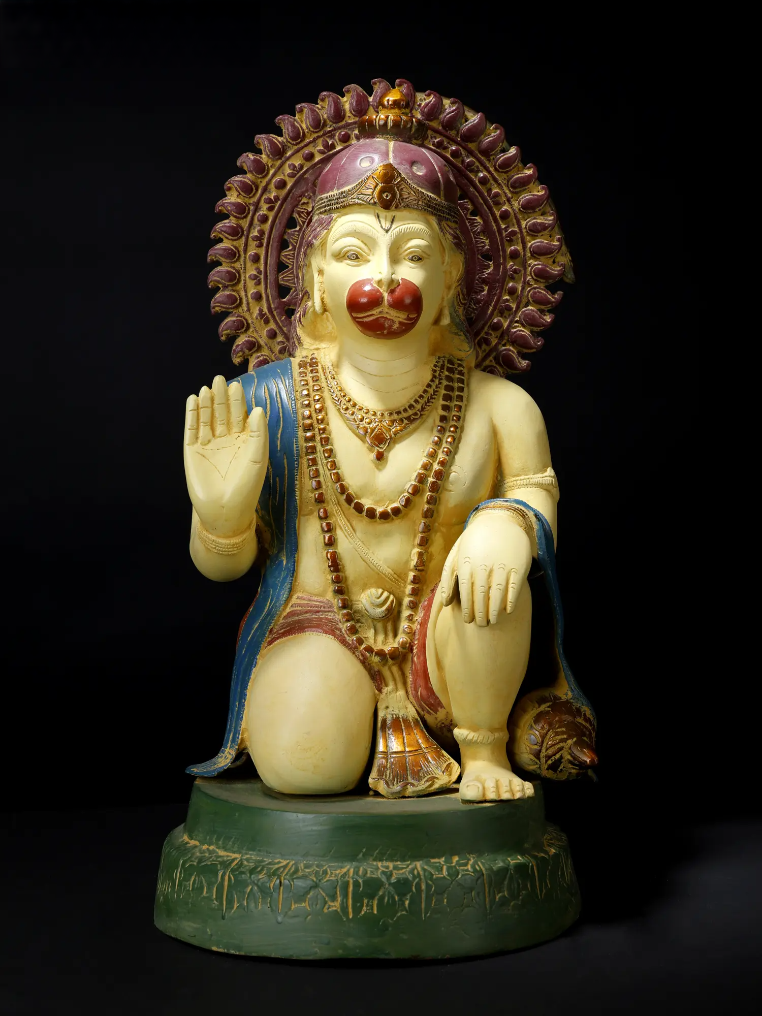 दिव्य सुरक्षा और शक्ति का प्रतीक। पंचमुखी हनुमान की यह राजसी प्रतिमा साहस, भक्ति और आध्यात्मिक शक्ति का प्रतीक पाँच पवित्र चेहरों को प्रदर्शित करती है। विस्तृत अलंकरण और जीवंत पत्थरों की जड़ाई के काम से निर्मित, यह मूर्ति असाधारण कलात्मकता को दर्शाती है और घर के मंदिरों और पवित्र स्थानों में एक प्रभावशाली उपस्थिति बनाती है।
