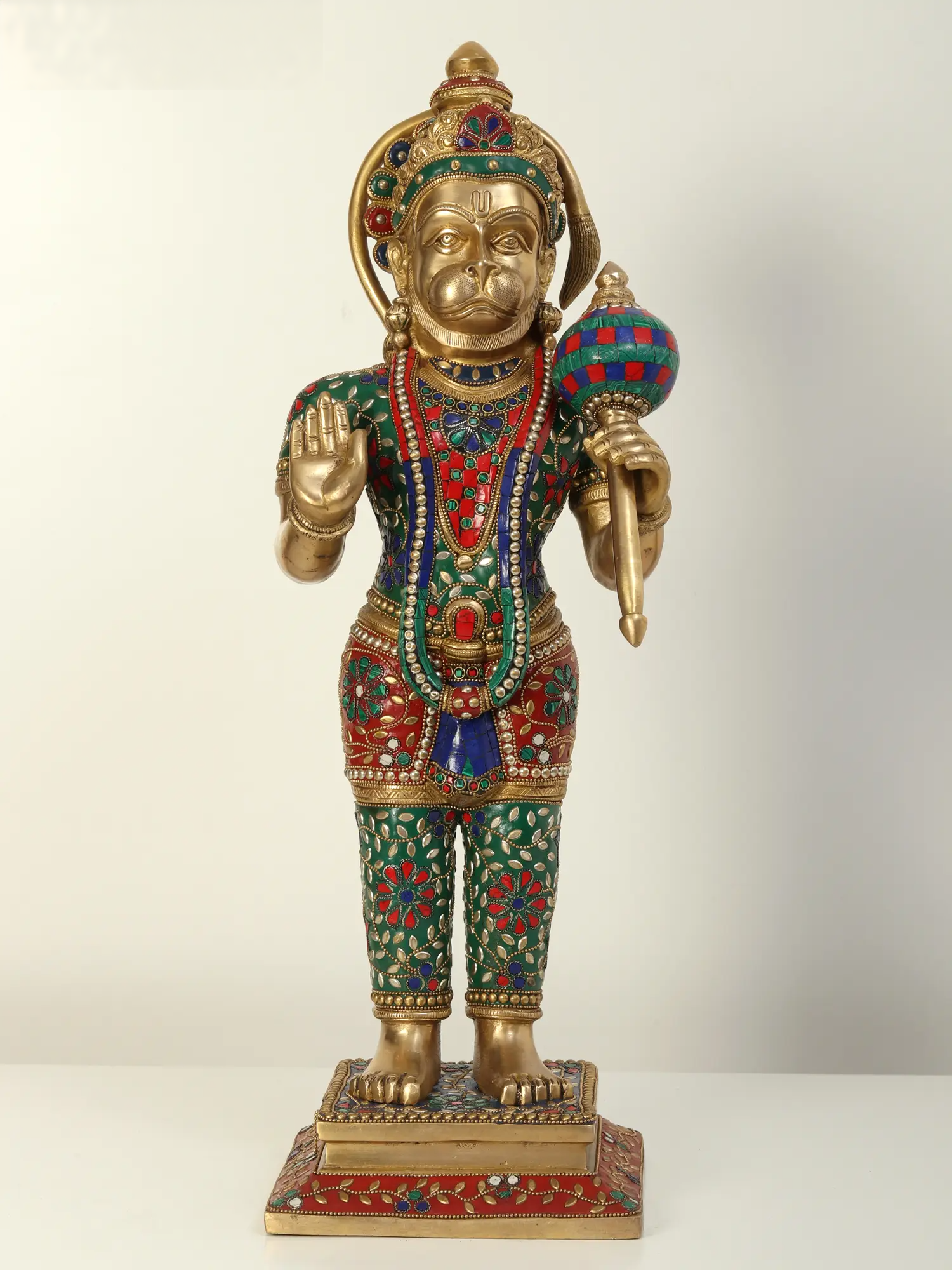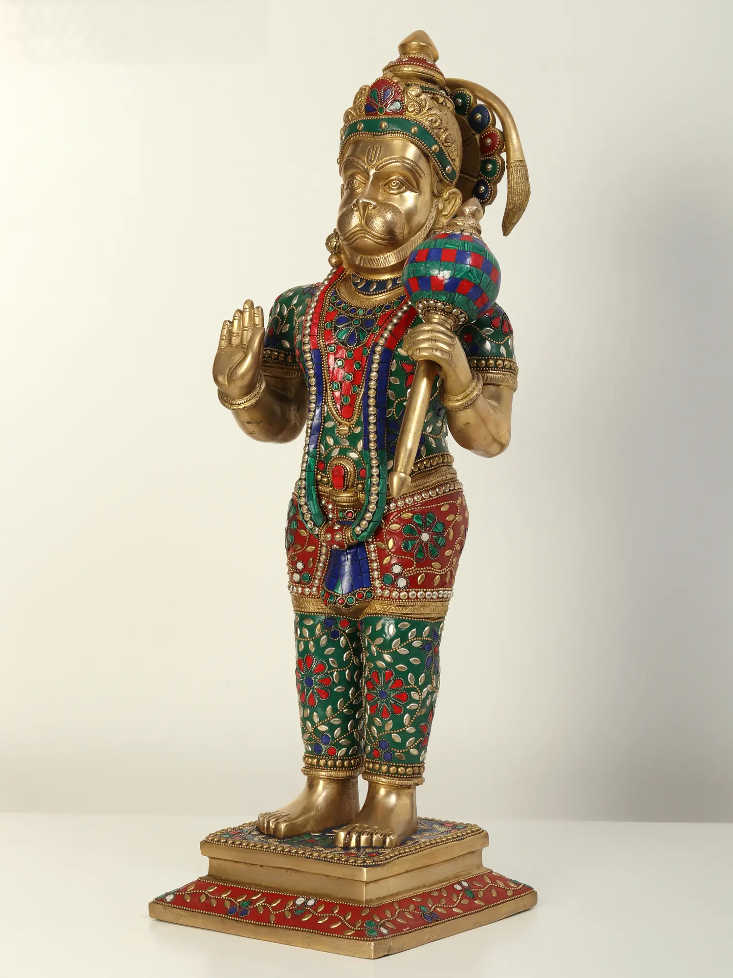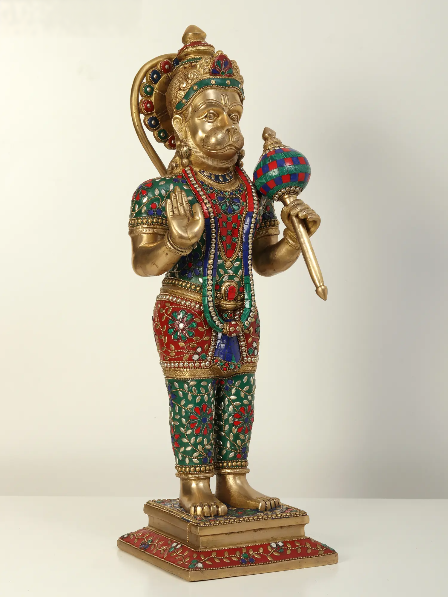ब्रासुर्रा® जटिल जड़ाई के काम के साथ खड़ी हनुमान प्रतिमा | ऊँचाई 23.2 इंच और वज़न 13.85 किलोग्राम