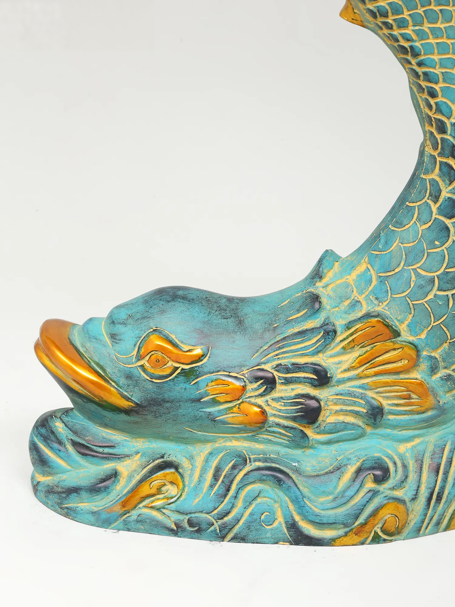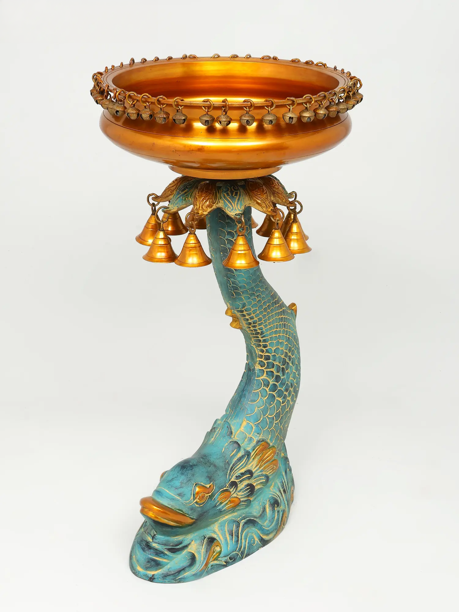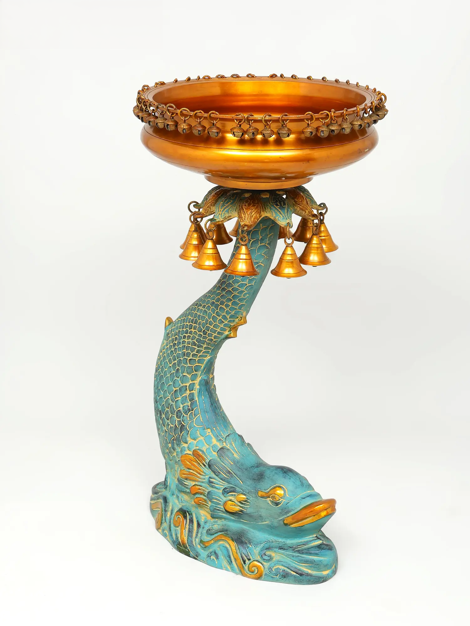 कोई मछली की सुंदर चाल से प्रेरित, यह आकर्षक पीतल का उरली कलात्मक डिज़ाइन को पारंपरिक सजावट के साथ मिश्रित करता है। सुंदर ढंग से गढ़ी गई मछली, स्टाइलिश लहरों से ऊपर उठती है, जो एक सजावटी उरली कटोरे को सहारा देती है, जिसे नाजुक लटकती घंटियों से सजाया गया है जो आकर्षण और मधुर ध्वनि जोड़ते हैं। इसका जीवंत पैटीना और सुरुचिपूर्ण शिल्प कौशल इसे तैरते फूलों, मोमबत्तियों या उत्सव की सजावट के लिए एक आकर्षक केंद्रबिंदु बनाते हैं।