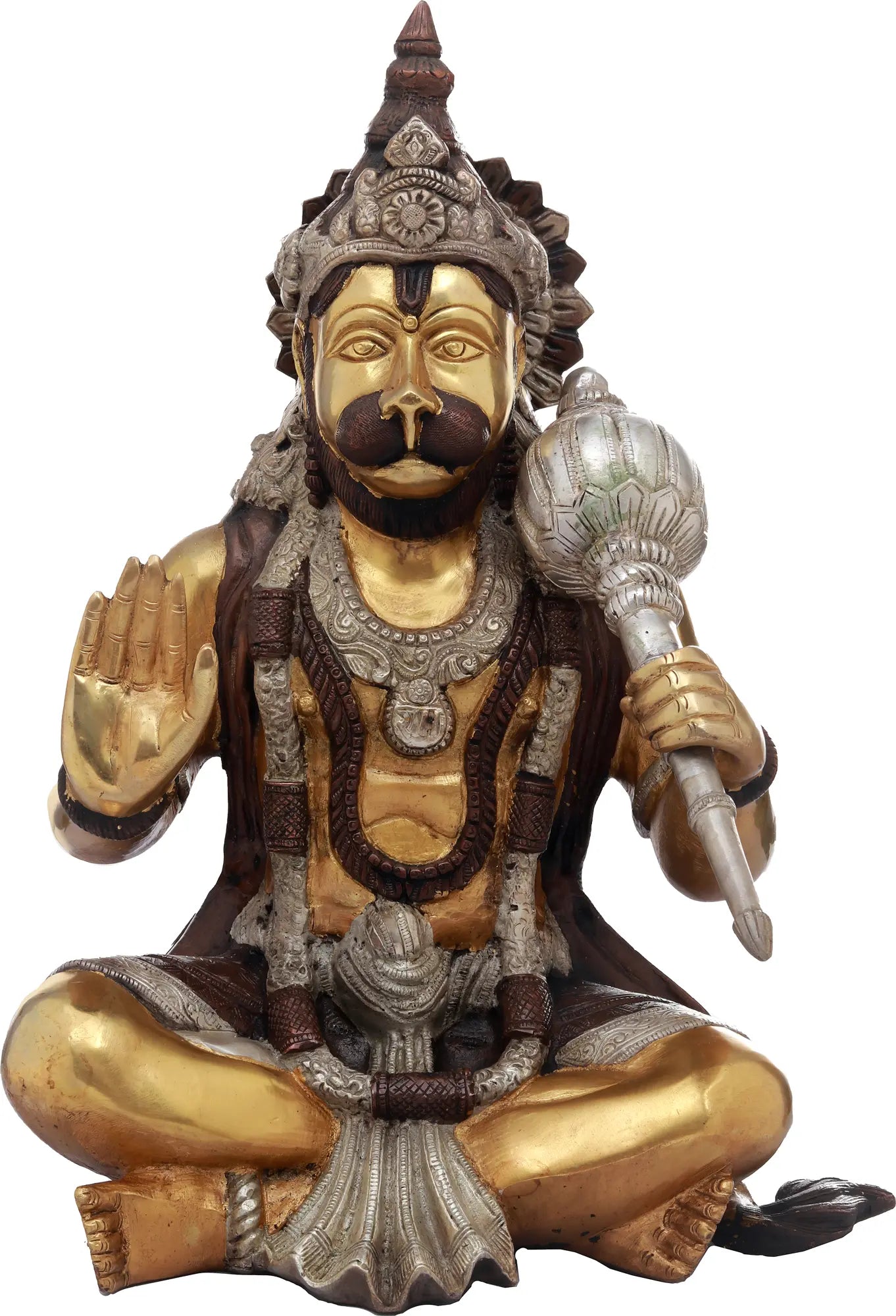 ब्रासौर® बैठी हुई हनुमान प्रतिमा | पीतल की मूर्ति | ऊंचाई 16.9 इंच और वज़न 13 किलोग्राम