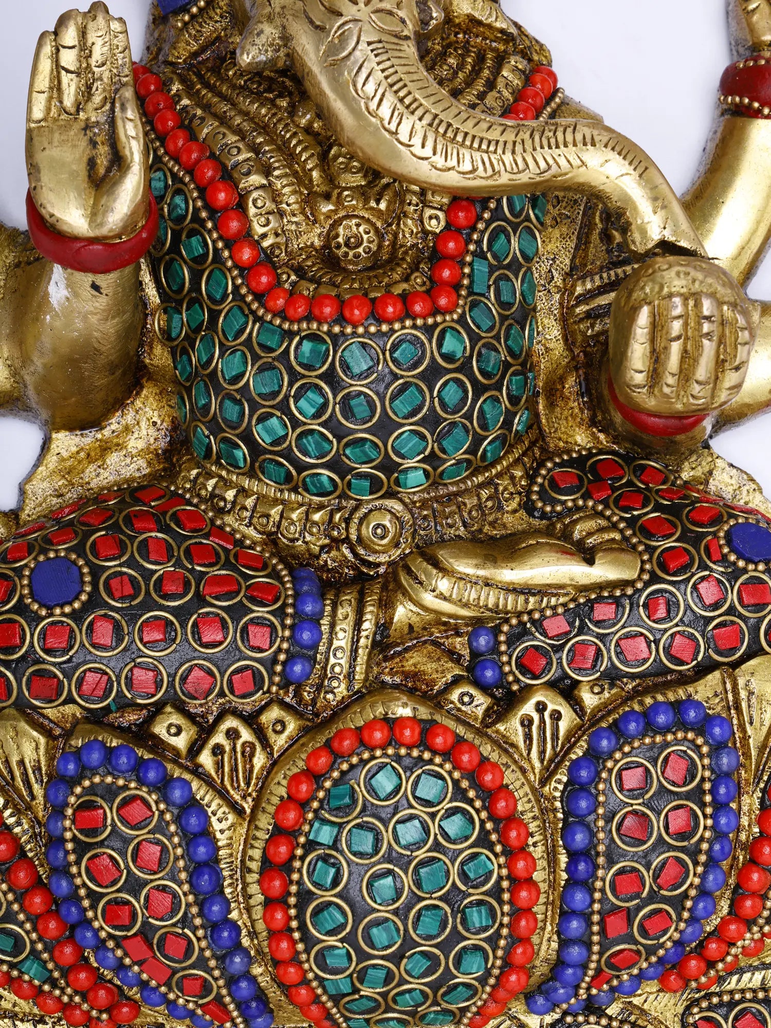 ब्रासोरा® कमल पर बैठे गणेश की दीवार पर लटकने वाली मूर्ति | मीनाकारी जड़ाई के काम के साथ पीतल | ऊंचाई 30 इंच और वज़न 10.50 किलोग्राम