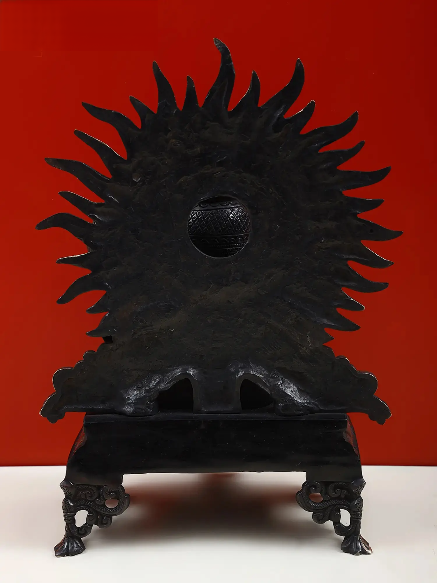 कारीगरी: सूर्य प्रभामंडल पृष्ठभूमि के साथ विस्तृत हस्तनिर्मित नक्काशी