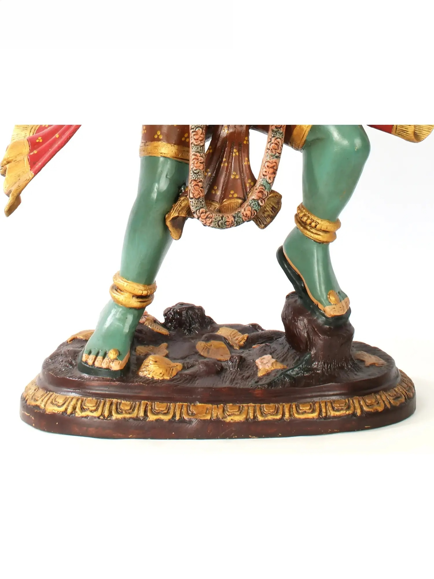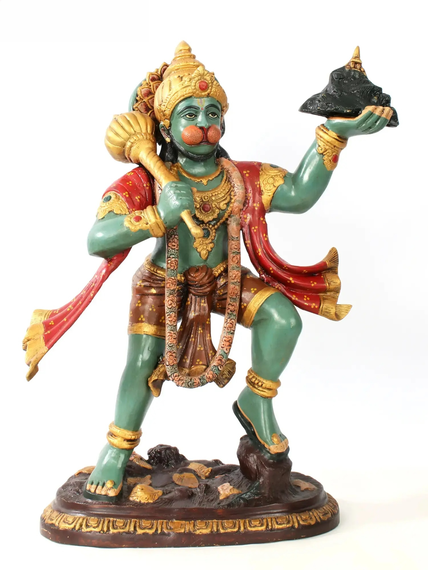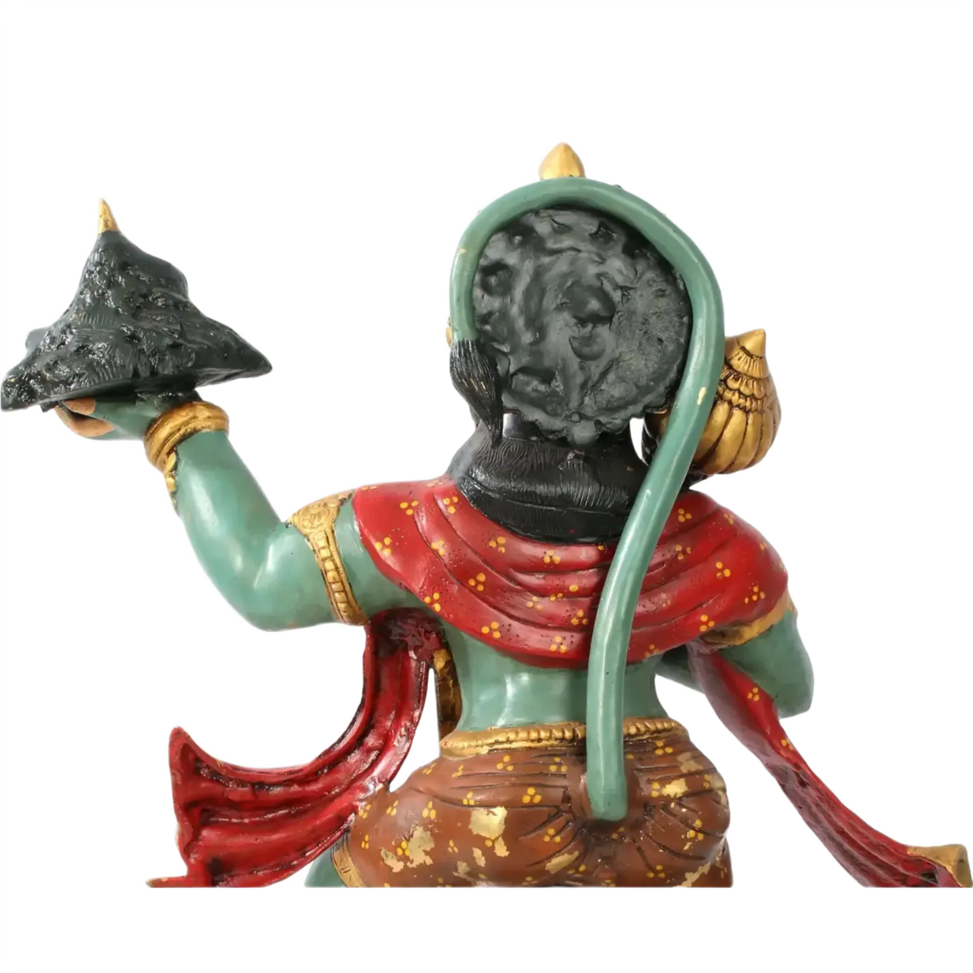 यह बारीक गढ़ी हुई पीतल की मूर्ति वीर हनुमान को एक दृढ़ और शक्तिशाली मुद्रा में पवित्र संजीवनी पर्वत को ले जाते हुए दर्शाती है। विस्तृत अलंकरण, जीवंत फिनिशिंग और भावपूर्ण विशेषताएं पारंपरिक भारतीय शिल्प कौशल को उजागर करती हैं, जिससे यह एक प्रभावशाली भक्तिपूर्ण केंद्रबिंदु बन जाती है।