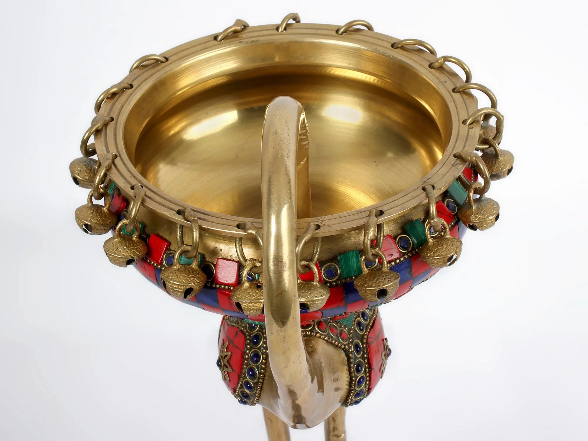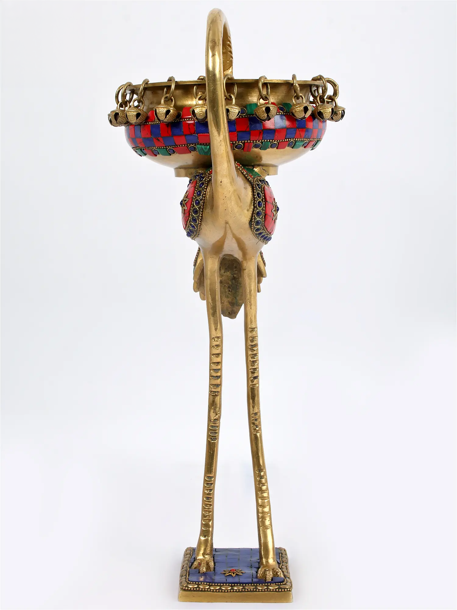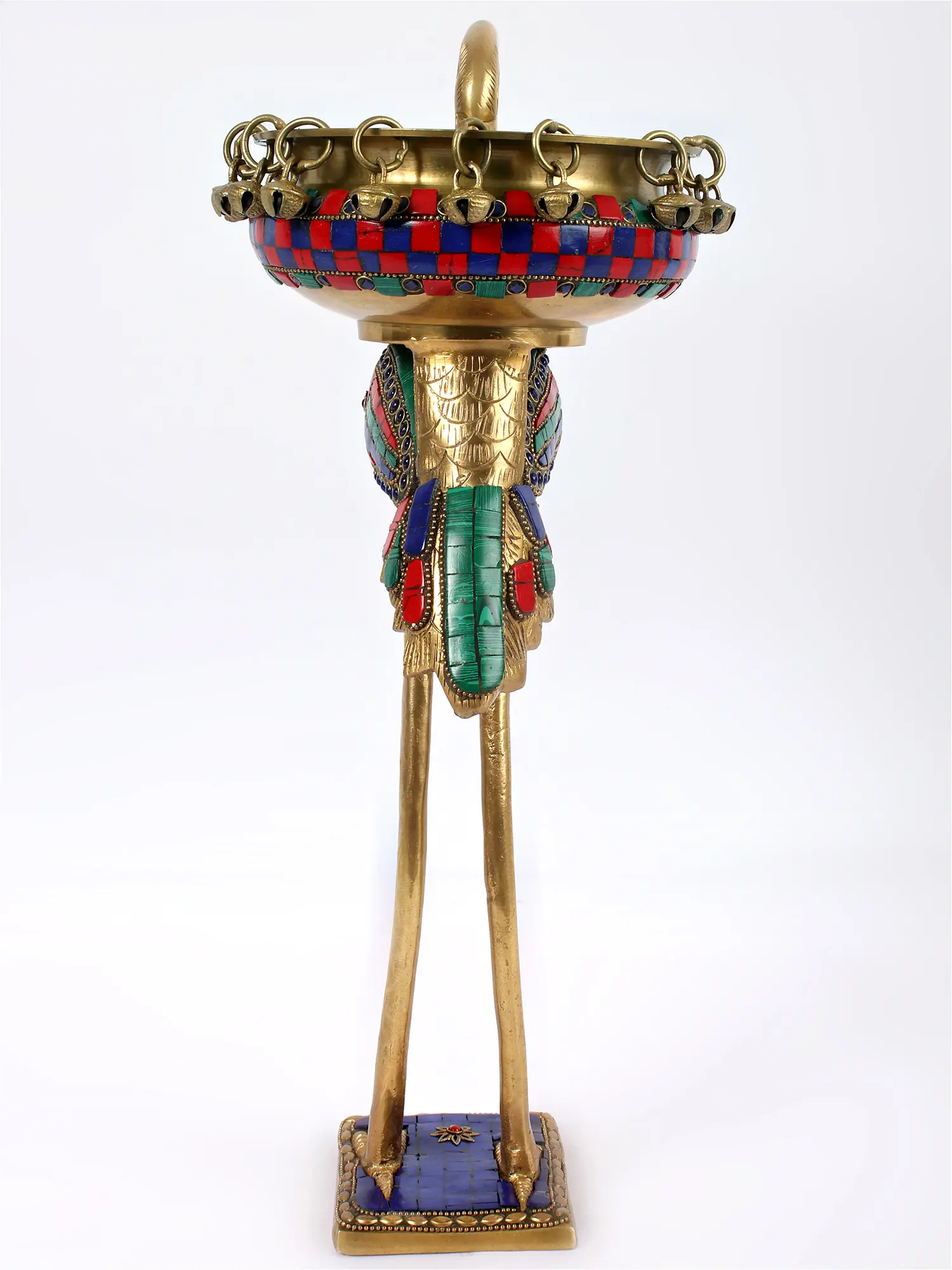 • फिनिश: पॉलिश किया हुआ पीतल, बहुरंगी स्टोन इनले के साथ