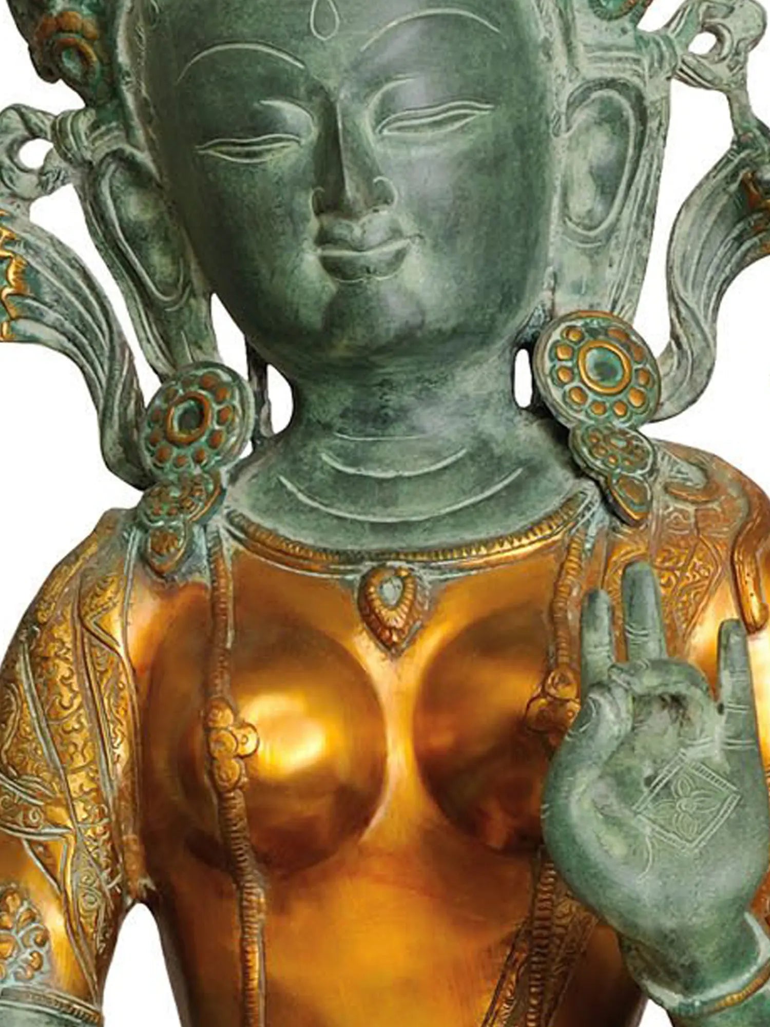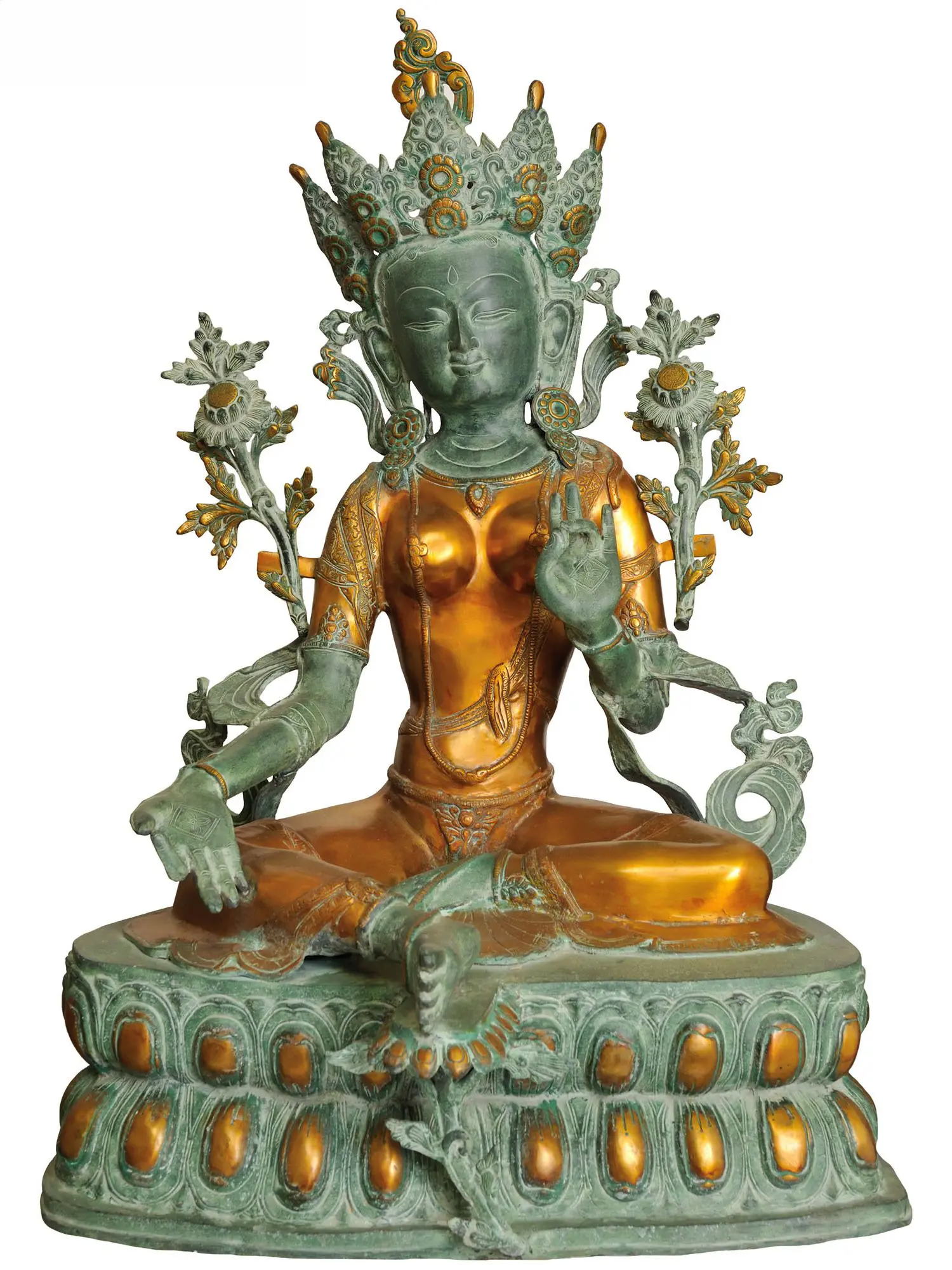 ब्रासौर्य® ग्रीन तारा ब्रास प्रतिमा (इनले वर्क के साथ) | ऊँचाई 33.5 इंच और वज़न 35 किग्रा