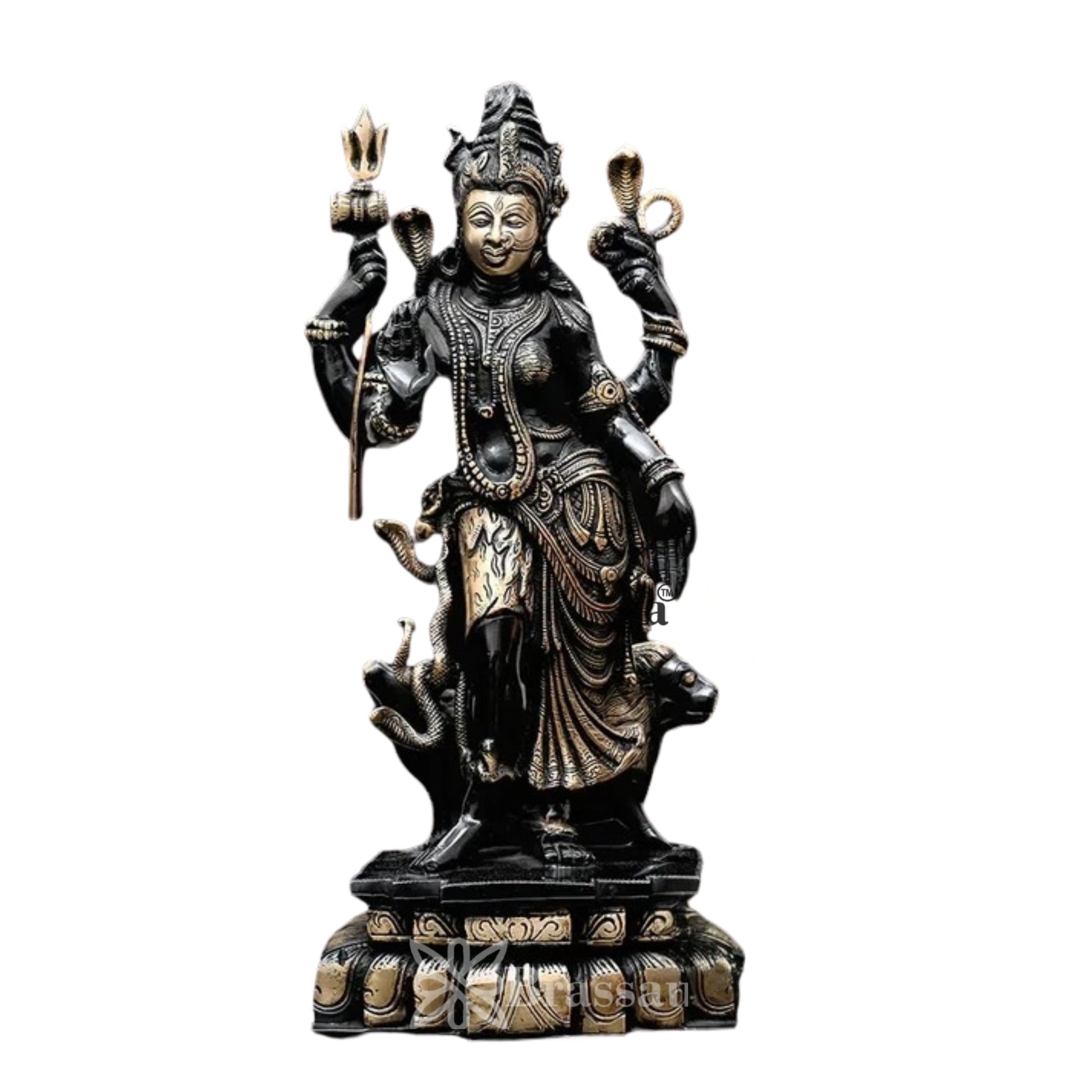 Graceful and deeply symbolic, this Brass Ardhanarishwar Statue stands approximately 17.3 inches tall and weighs 9.66 kg. Expertly handcrafted from solid brass, the idol portrays the powerful union of Lord Shiva and Goddess Parvati, representing the perfect harmony of masculine and feminine energies.