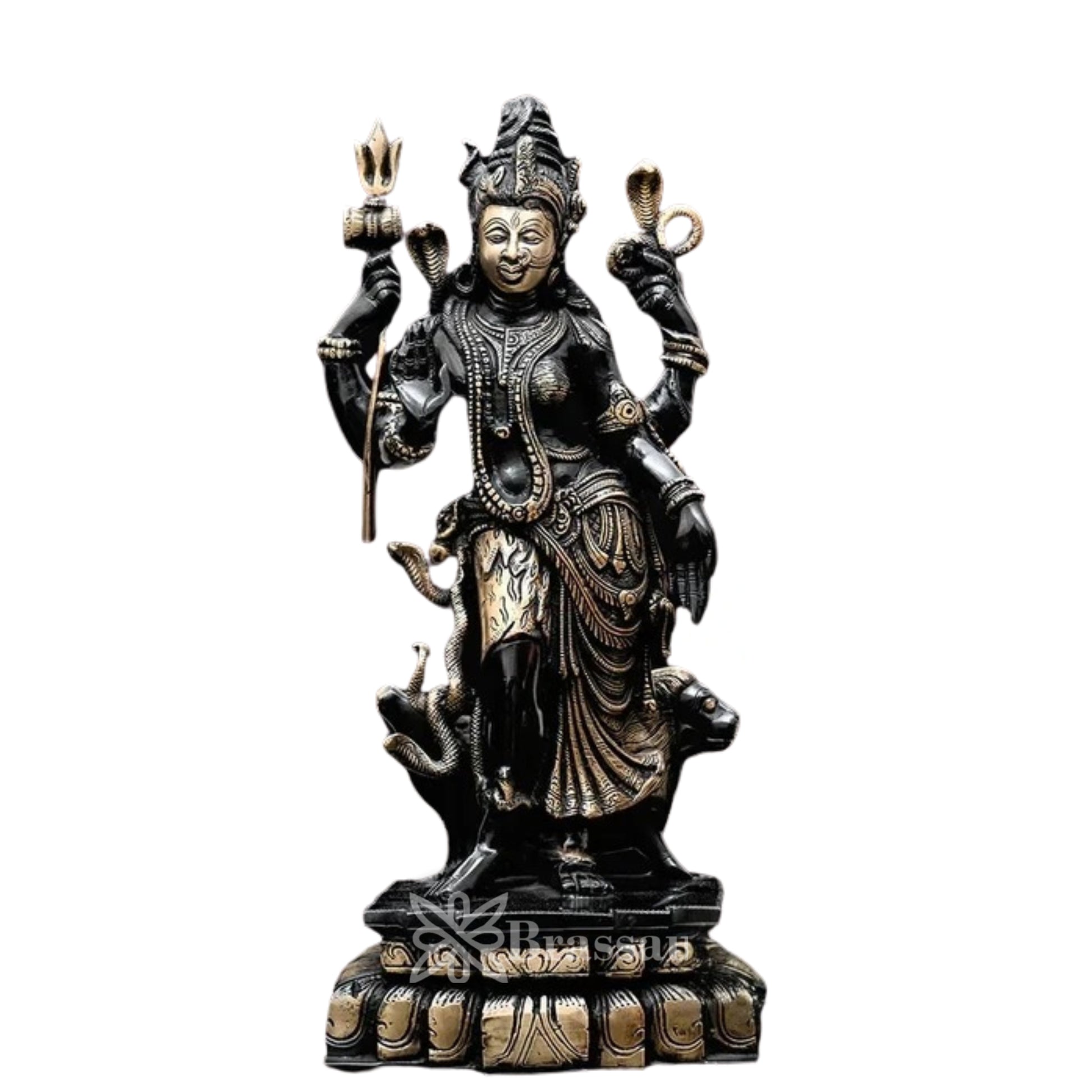 Adorned with intricate detailing and a polished golden-brass finish, this statue brings a divine aura to any space—ideal for home altars, spiritual corners, or traditional décor with a deeper meaning.