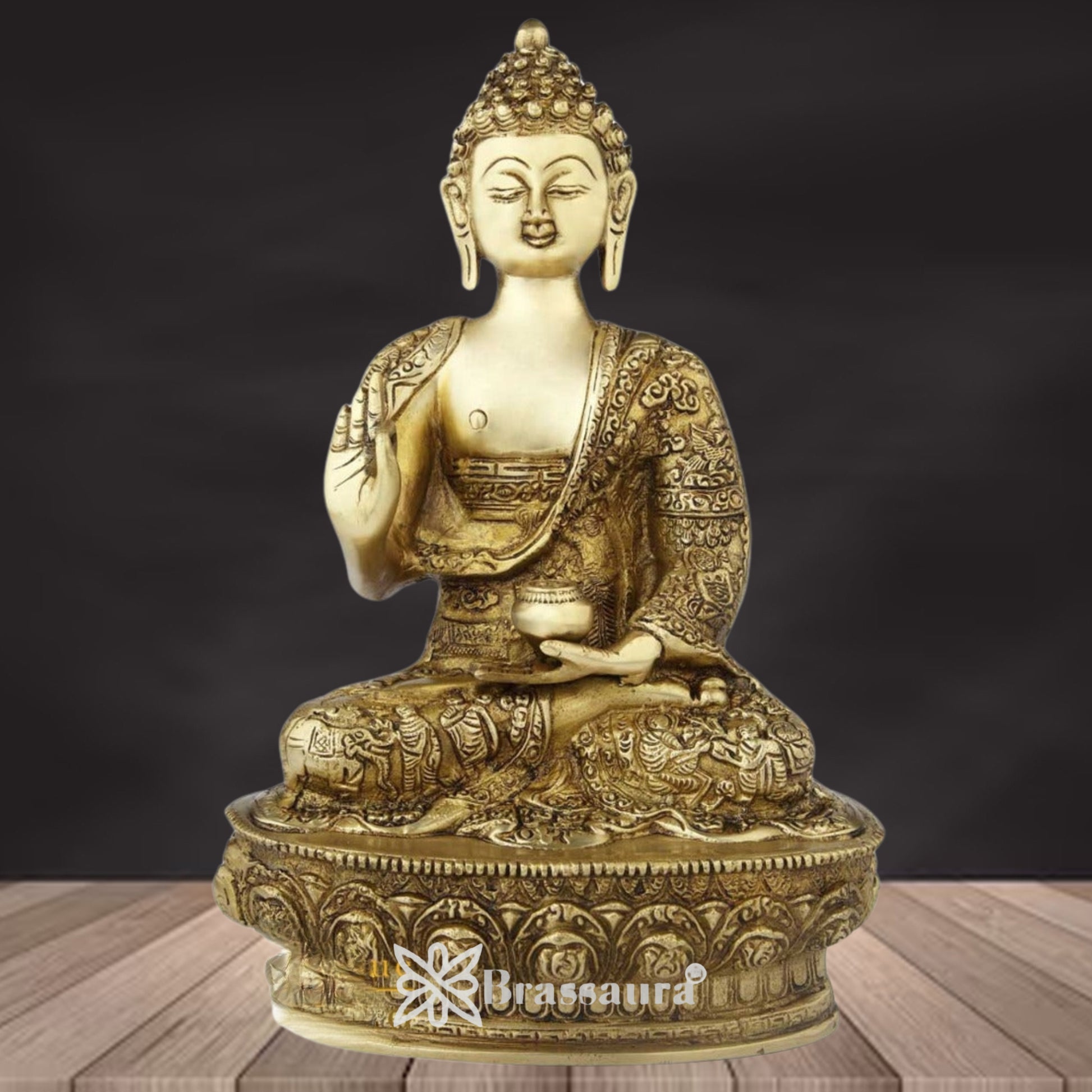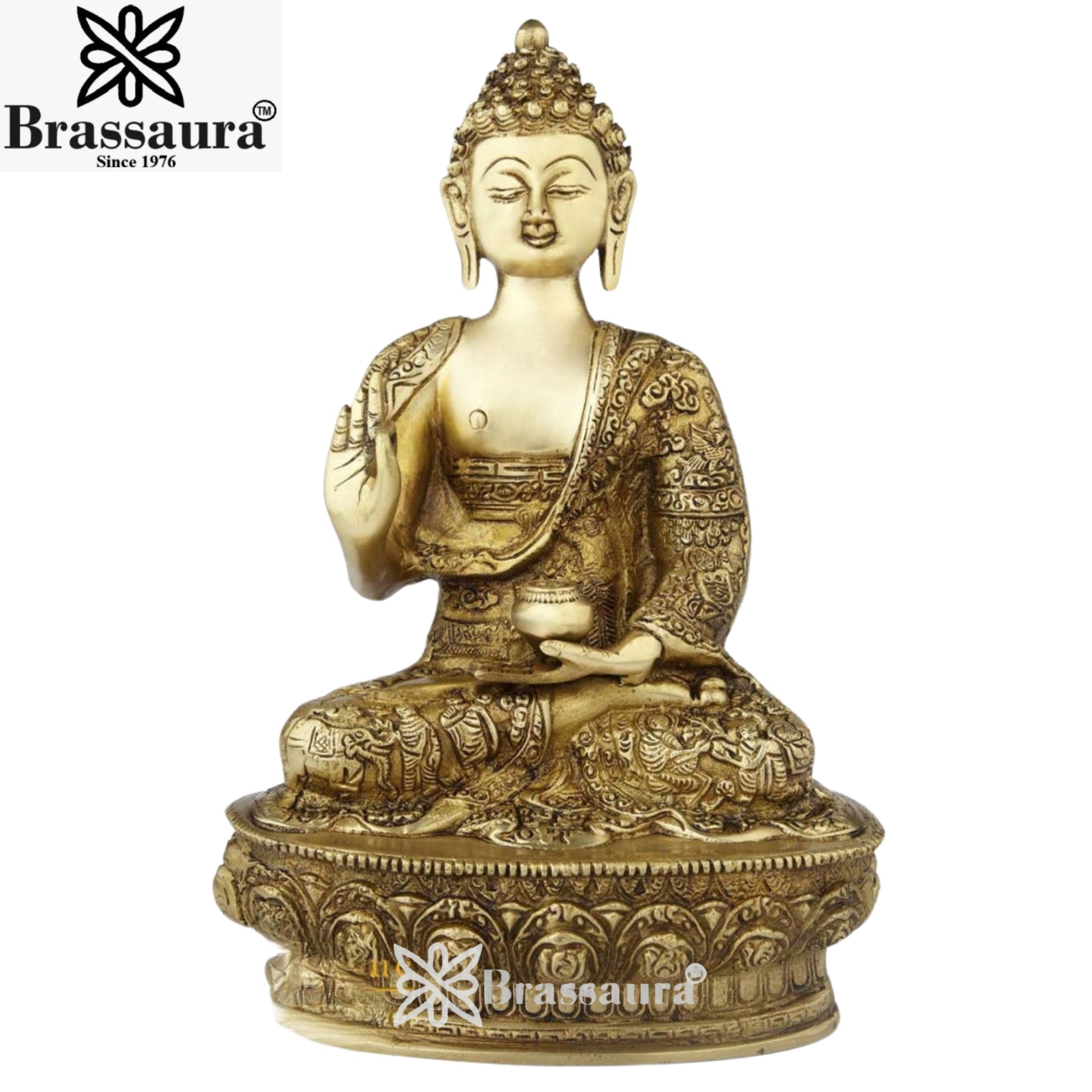 Bring timeless peace and grace to your space with this Brass Antique Buddha statue. Standing 12 inches tall and weighing 3.5 kg, this handcrafted piece is made from solid brass and features a classic antique finish that evokes serenity and spiritual depth.