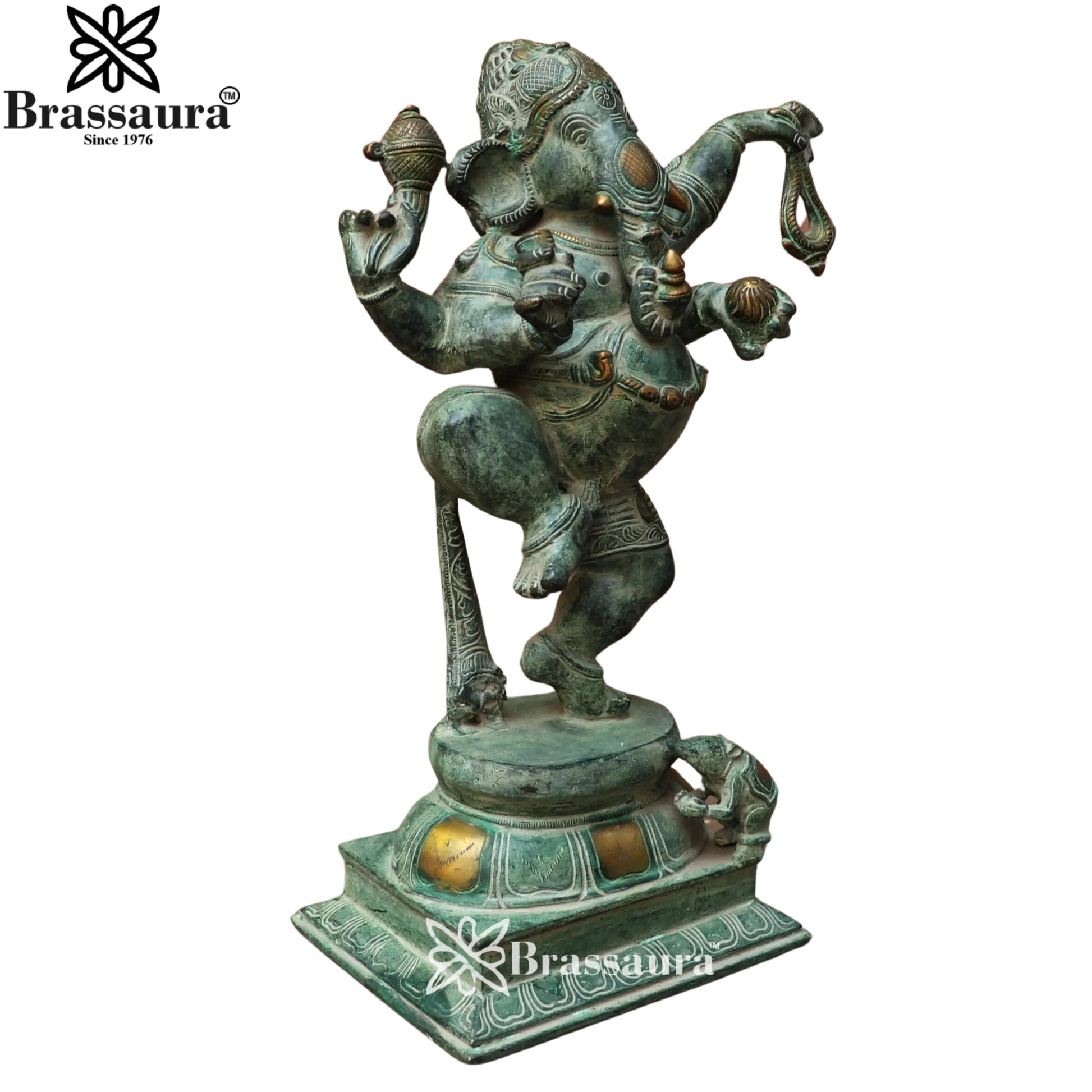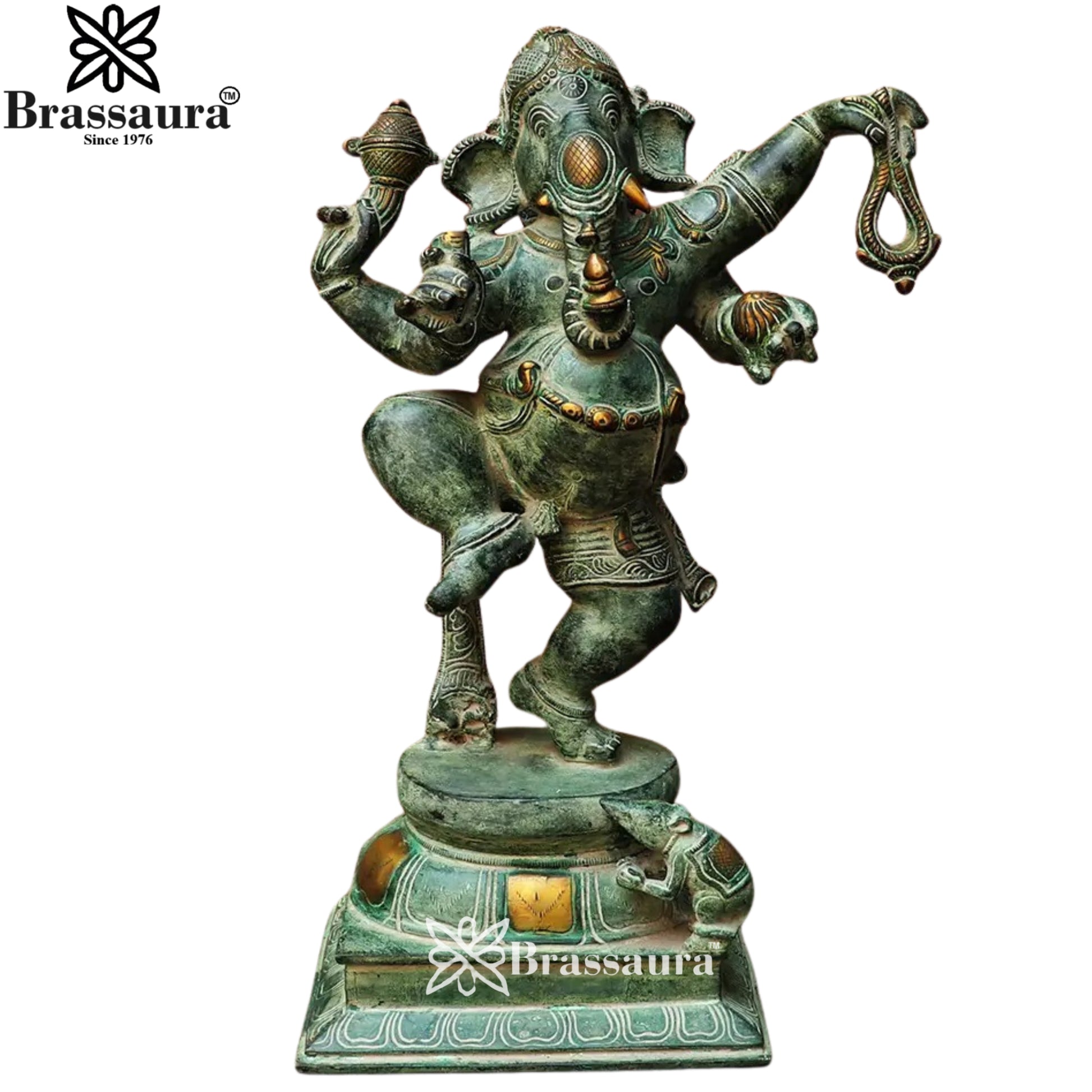 Brass Antique Ganesha Statue Weight 10.5 Kg & Height 17.5 Inch