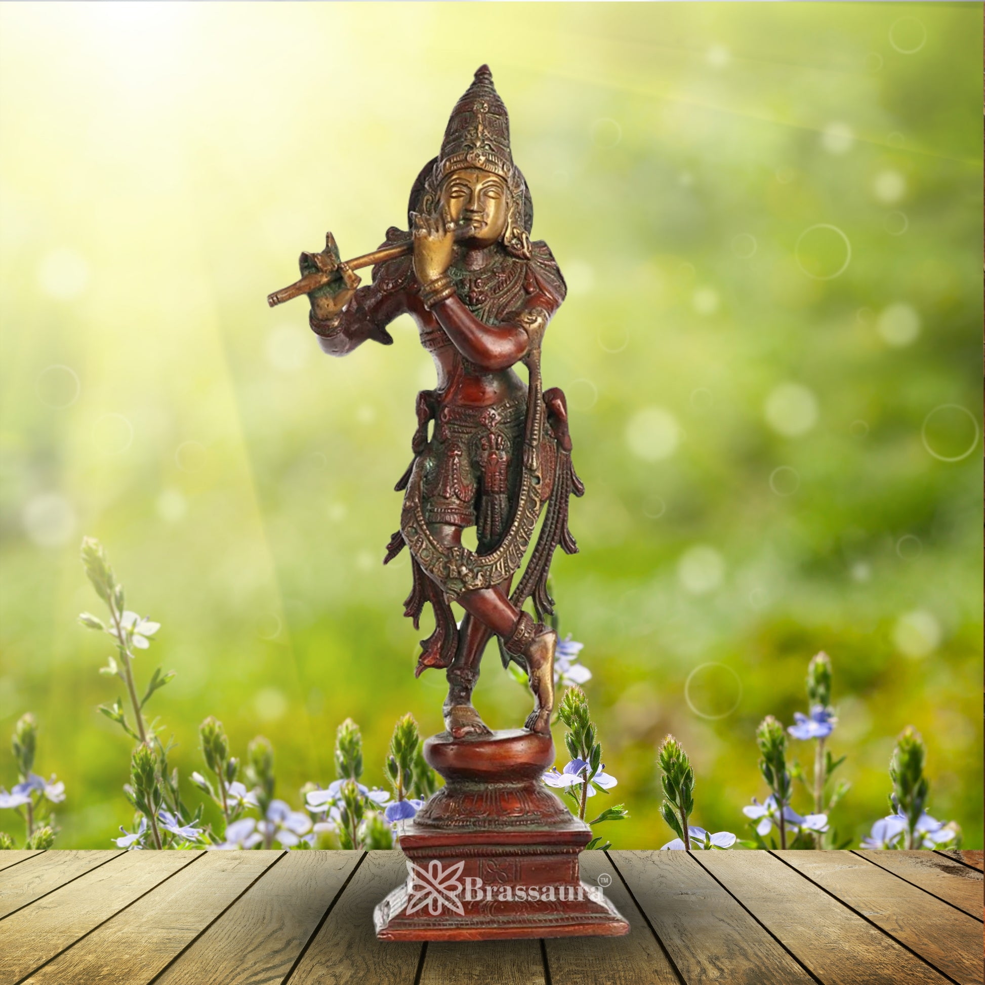Brass Antique Krishna Murti – 2.3 Kg, 12 Inches