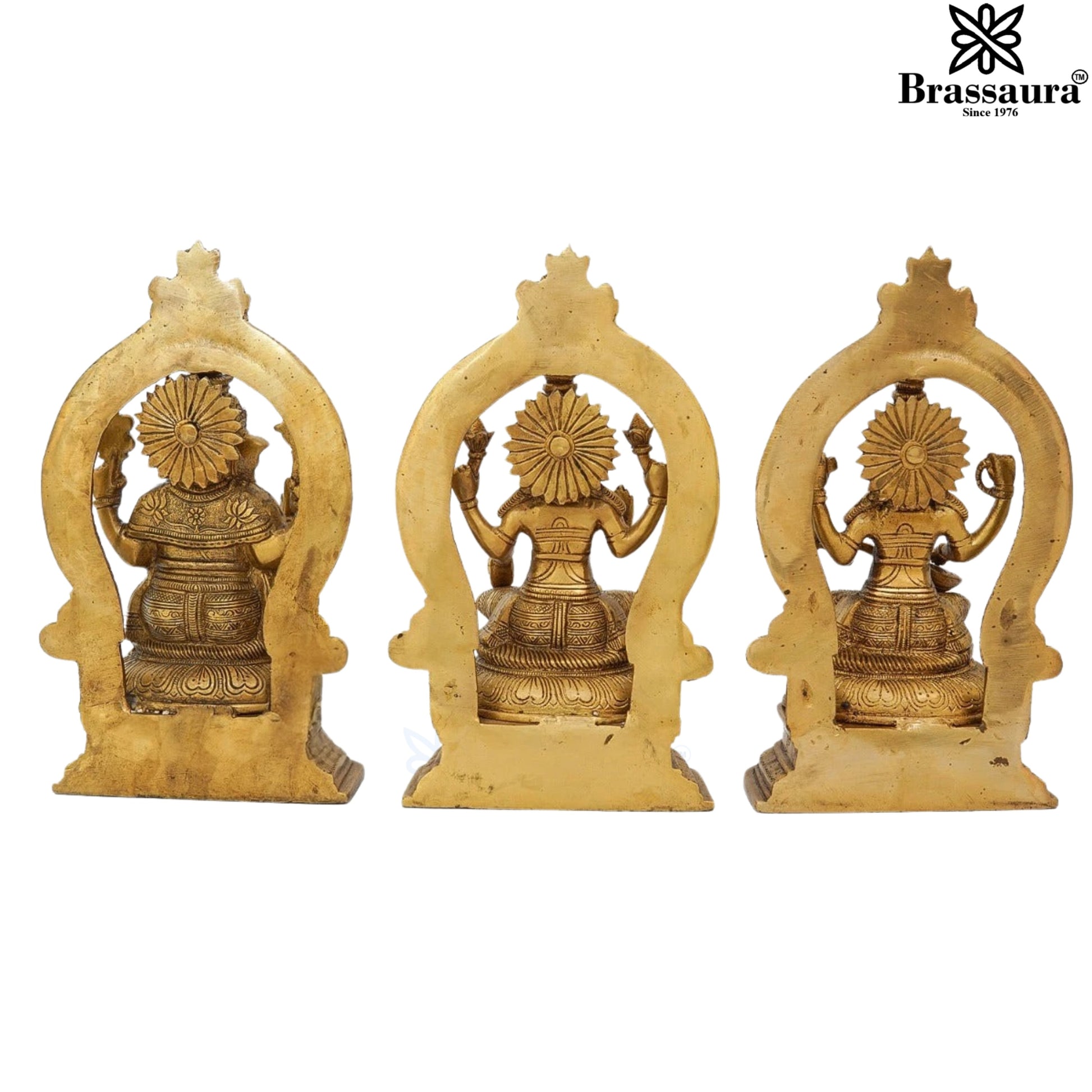 Brassaura™ Artistic Brass Antique Laxmi Ganesha Saraswati Idol – Height 11.5 Inches & Weight 12 Kgs | Devotional Accent