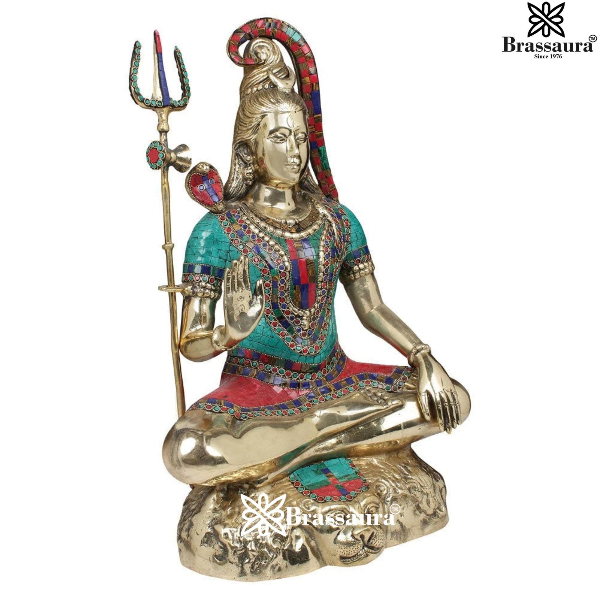 Brassaura™ Brass Gem Stone Work Lord Shiva Murti – Height 24 Inches & Weight 18.5 Kgs | Devotional Home Décor