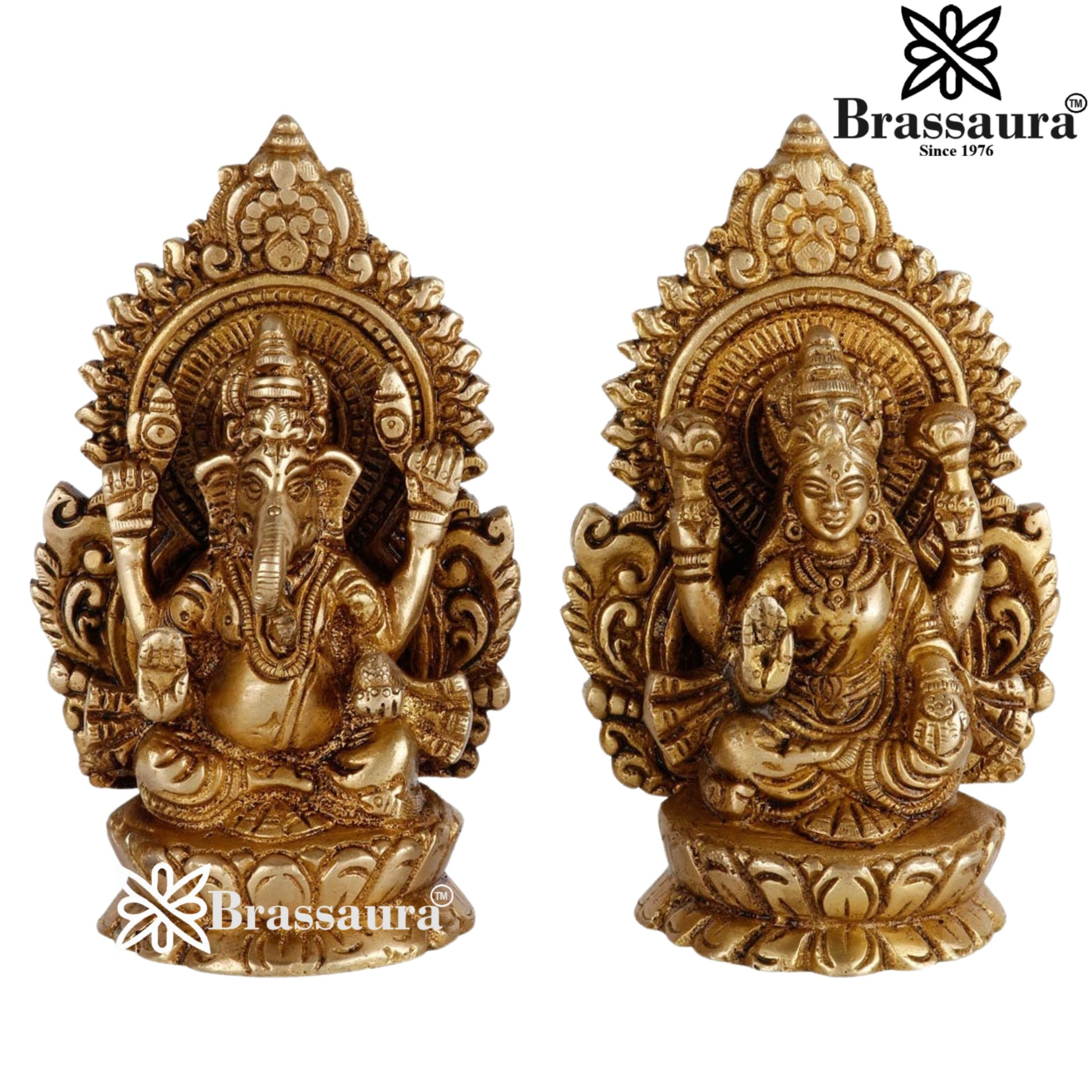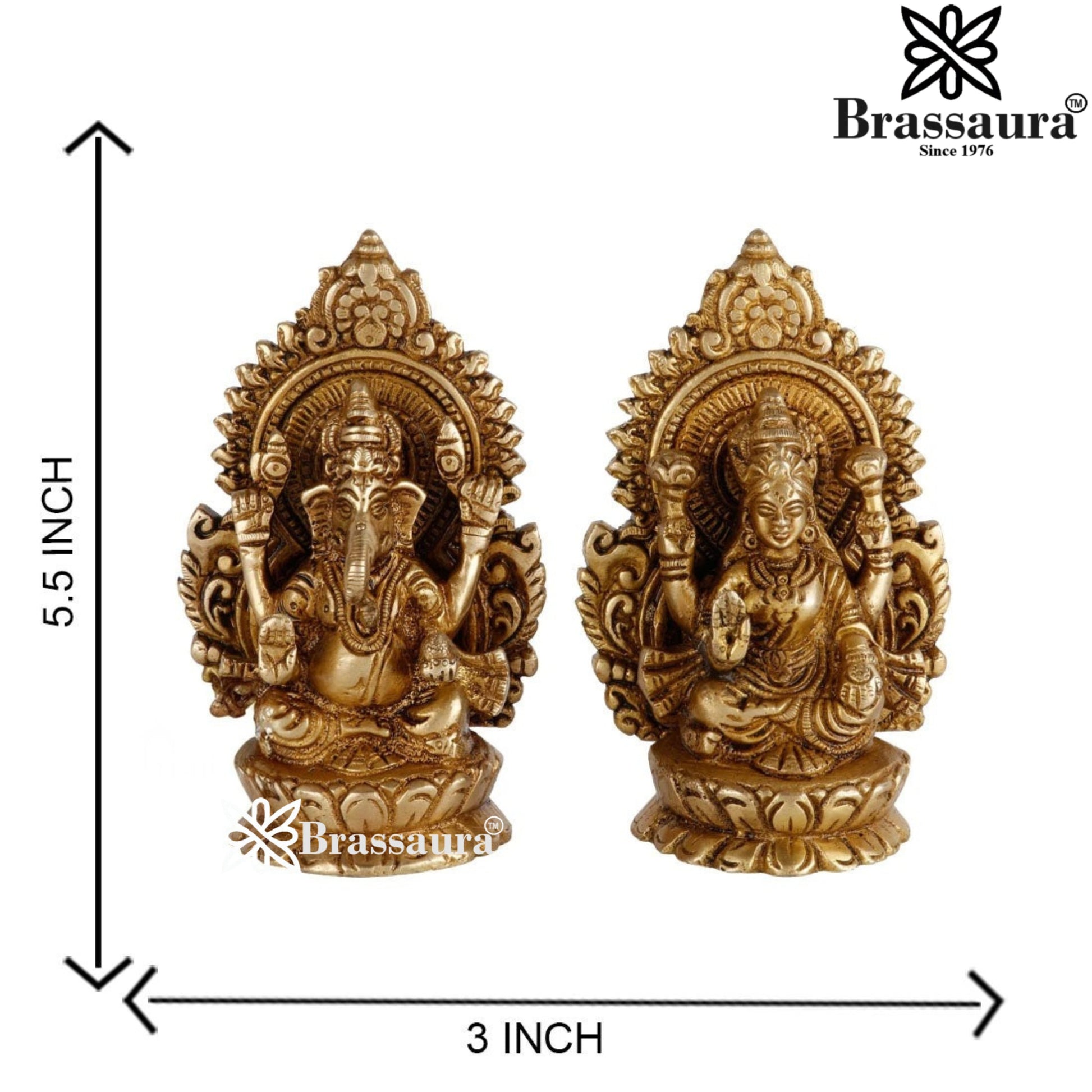 Brassaura™ Elegant Brass Laxmi Ganesha Idol – Height 5.5 Inches & Weight 1.8 Kgs | Devotional Home Décor