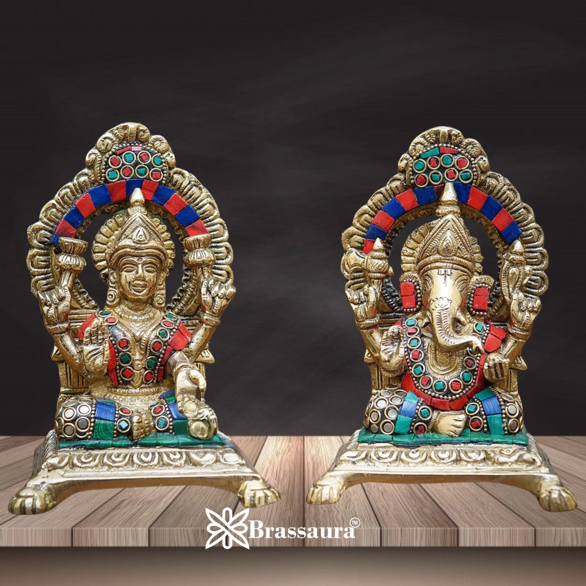 Brass Gem Stone Work Lakshmi Ganesh Weight 3 Kg & Height 6 Inch