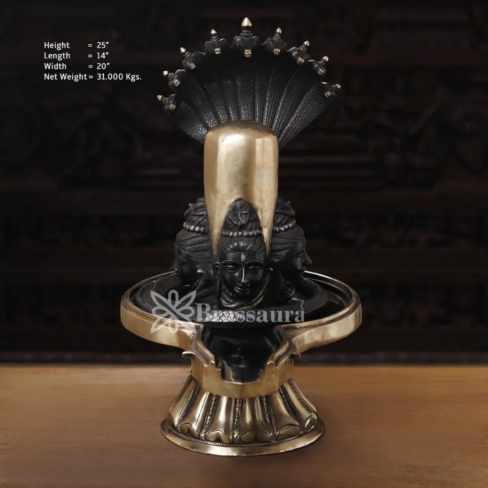 Brass Big Black Shivling with Naagraaj Statue – 25 Inch | 31 Kg