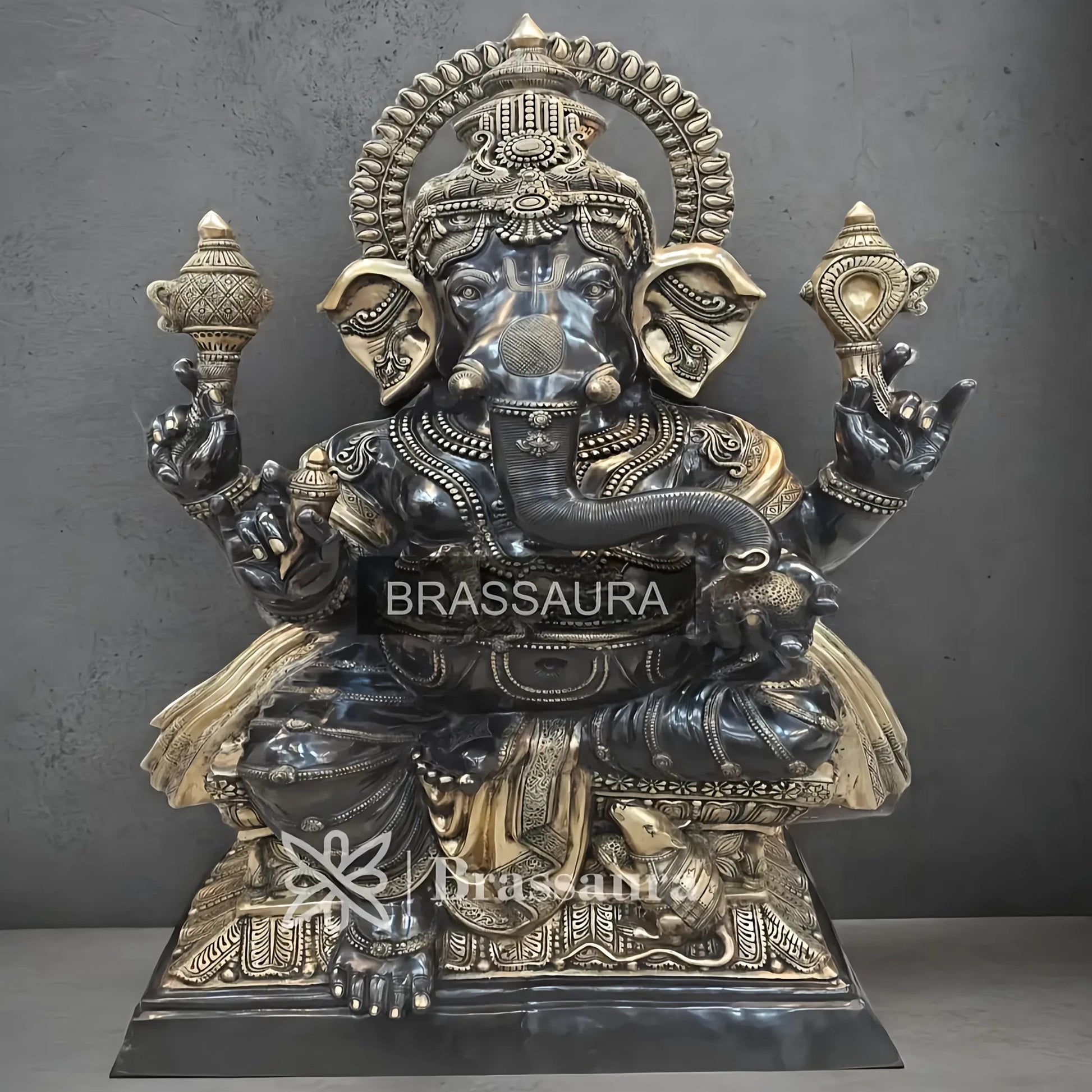Make a grand spiritual statement with this Brass Big Ganesha Idol. Handcrafted from pure brass with vibrant multi-coloured detailing, it showcases Lord Ganesha in a majestic posture, perfect for pooja rooms, temples, or as a striking décor piece.