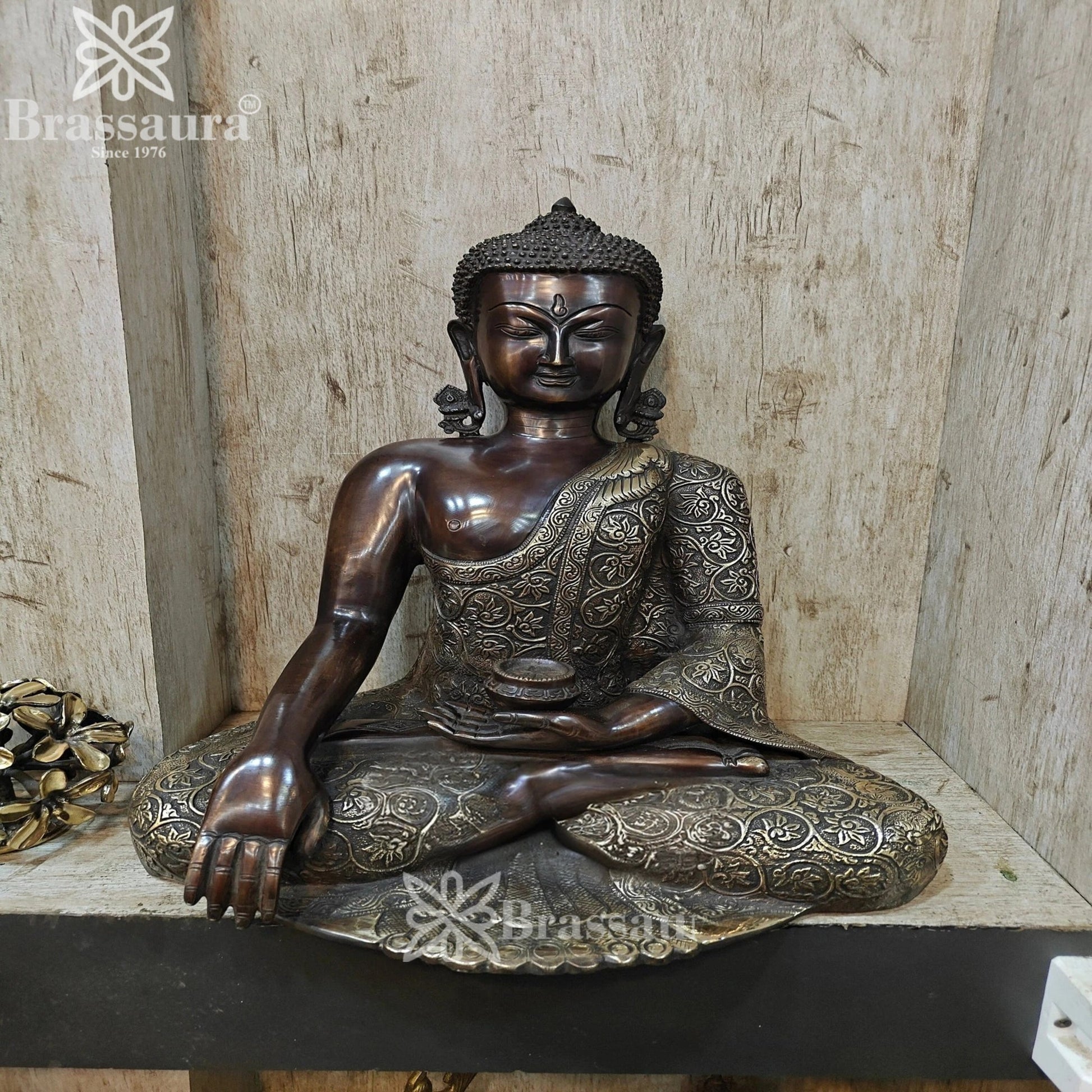 Brass Bhumisprasa Buddha Weight 14.5 kg & Height 17 Inch