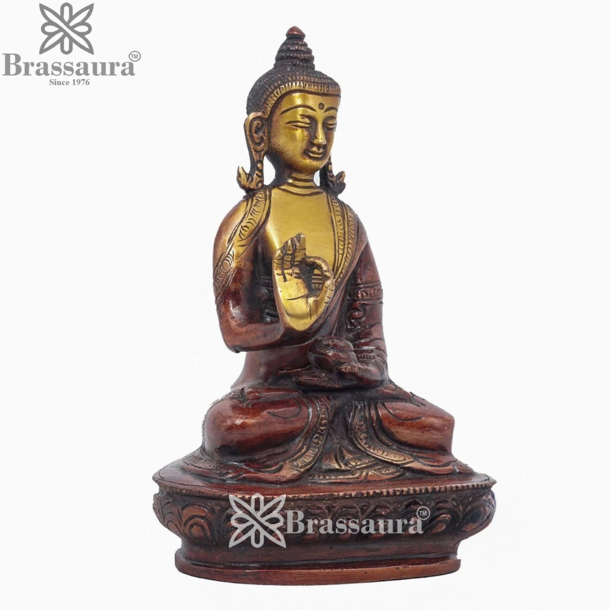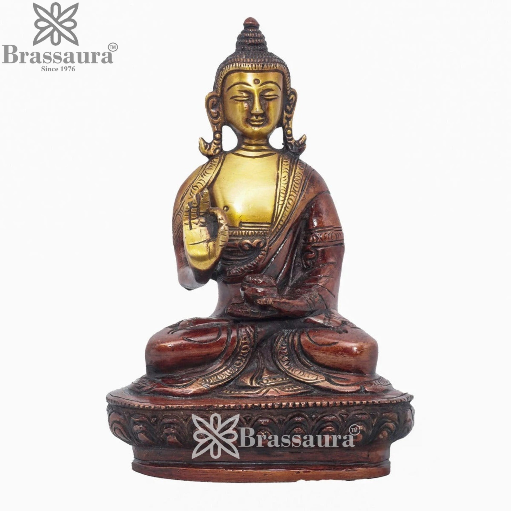 Channel calm, confidence, and spiritual strength with this beautifully crafted Brass Blessing Buddha. Depicted in the Abhaya Mudra (gesture of fearlessness and reassurance), this statue embodies compassion, protection, and divine peace.