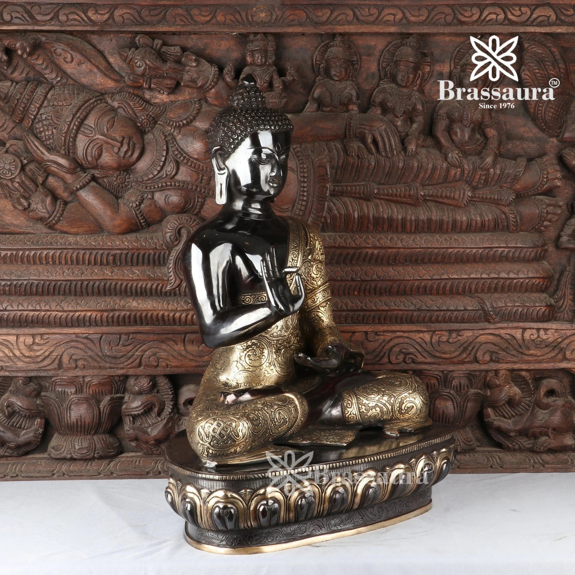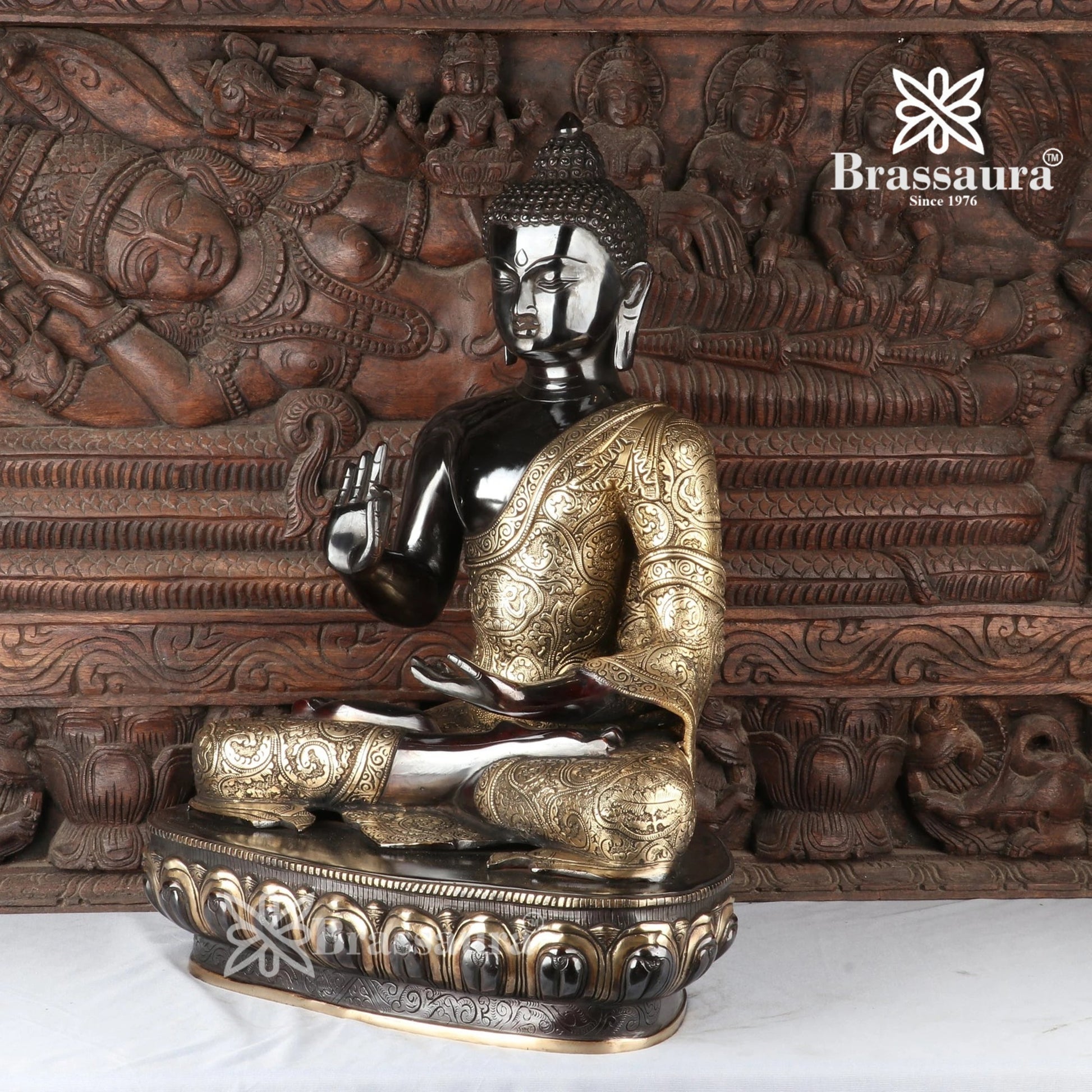 Powerful yet serene, this Brass Blessing Buddha is a beautifully crafted symbol of protection, peace, and inner strength. Standing 22 Inch tall and weighing 21.9 kg, it is made from solid brass and polished to a luminous finish, giving it both visual elegance and physical presence.