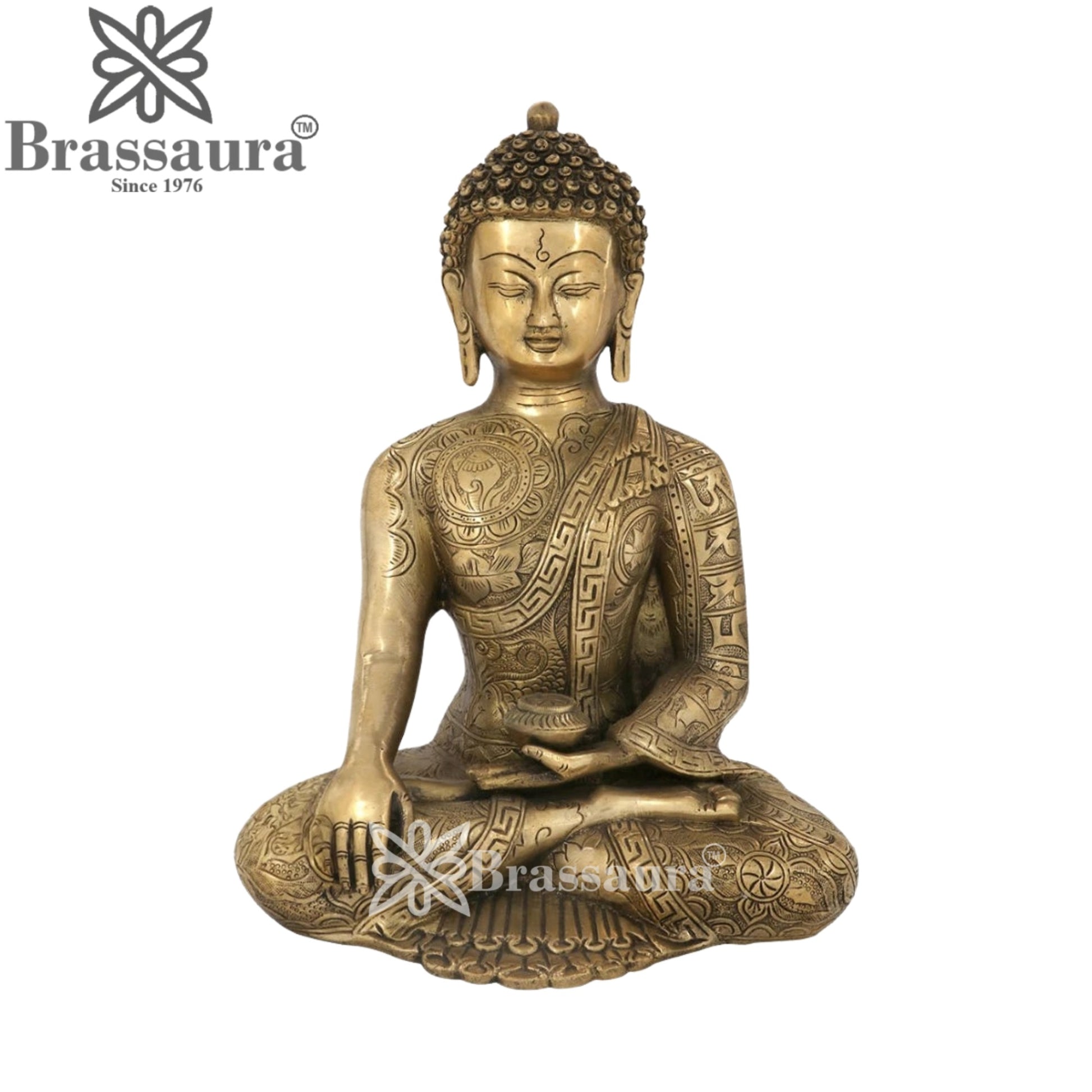 Standing 12 Inch tall and weighing 6.2 kg, this solid brass statue features a polished finish that enhances its intricate detailing. Ideal for altars, meditation spaces, or as a profound gift, it brings a sense of calm and spiritual depth to any setting.