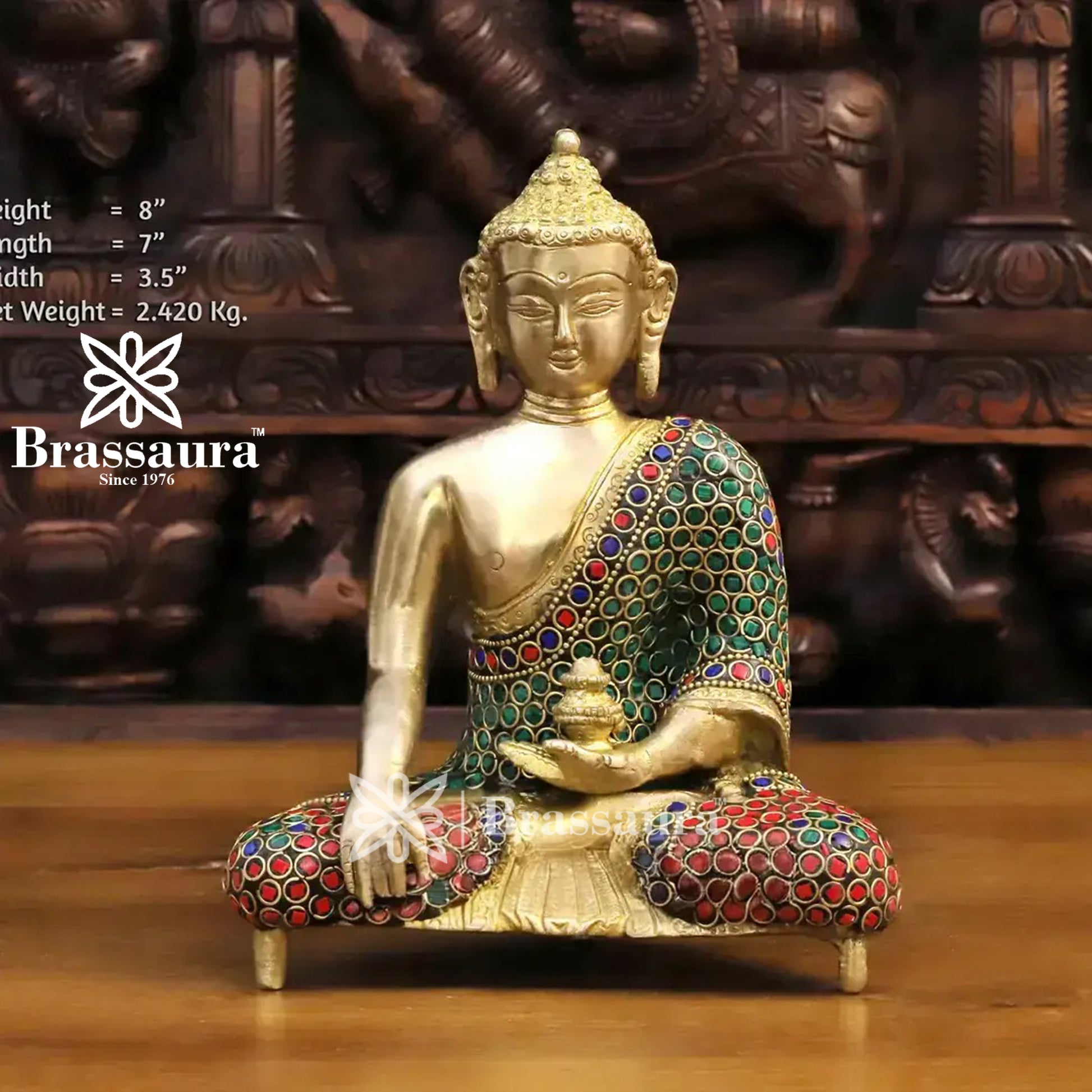 Brass Buddha For Home And Décor Weight 2.42 kg Height 8 Inch