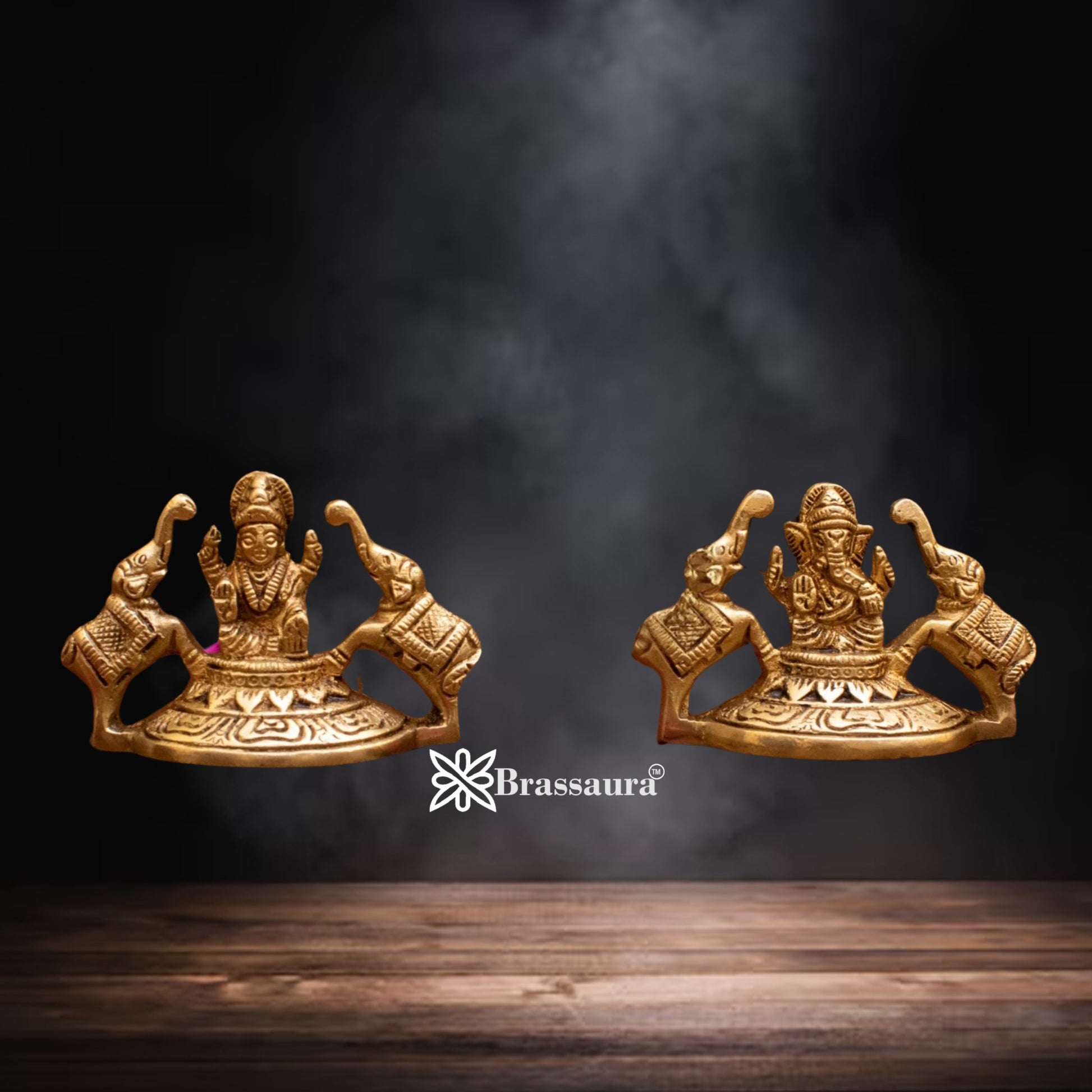 Brass Royal Golden Lakshmi Ganesh Weight 0.56 Kg & Height 2.3 Inche