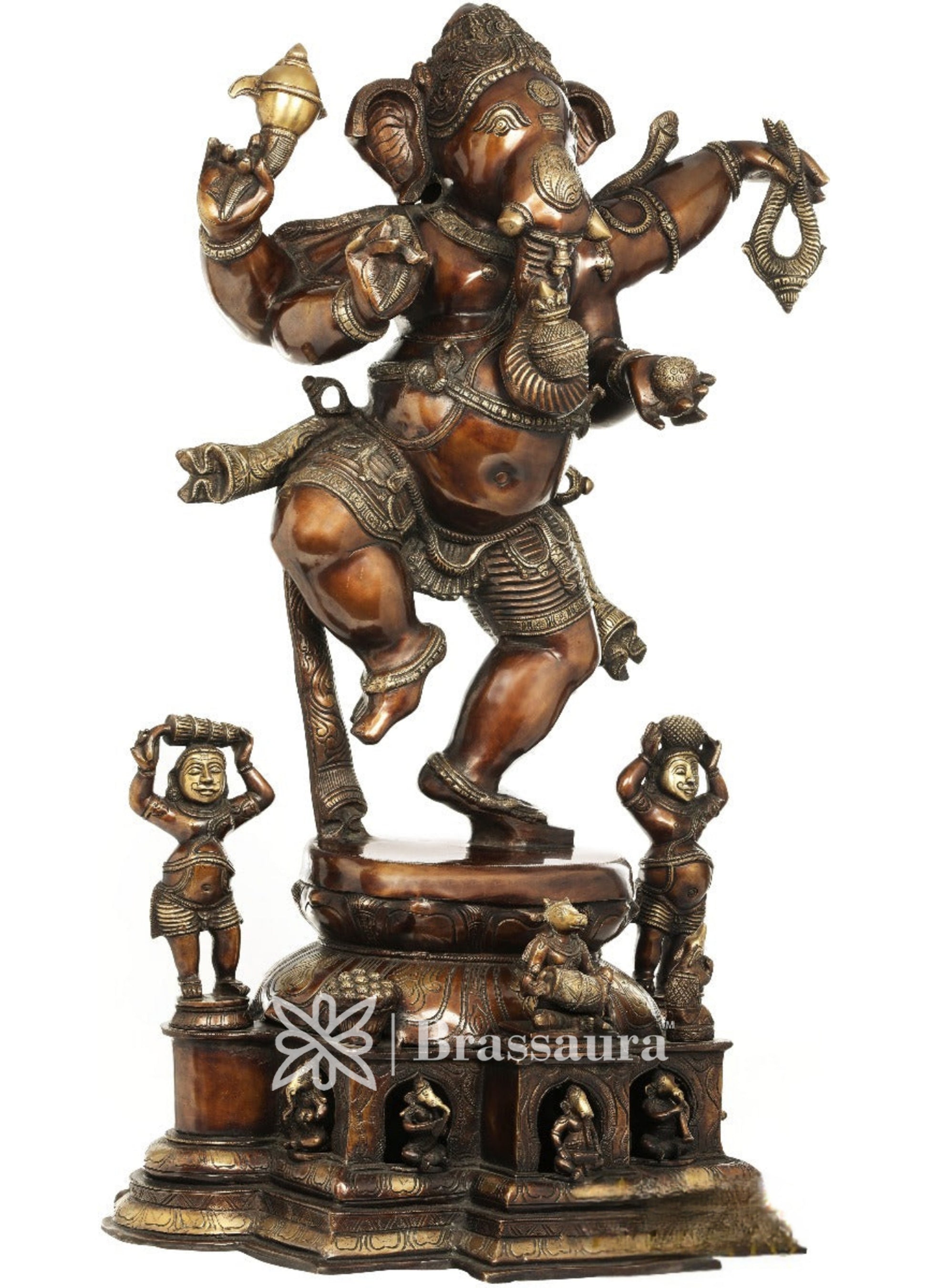 Brass Dancing Ganesha Statue for Home Décor and Gift Item